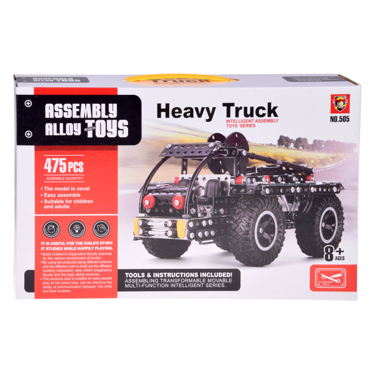 Konstruktoru komplekts ir lieliska dāvana bērniem, jauniešiem un pieaugušajiem, kas mīl izaicinājumus un radošu izklaidi. Komplektā ir 475 elementi, galvenokārt metāla detaļas, kas savienotas ar plastmasas papildinājumiem un lieliem gumijas riteņiem. Pateicoties tam, gatavais modelis ir stabils, izturīgs un izskatās ļoti reālistiski.