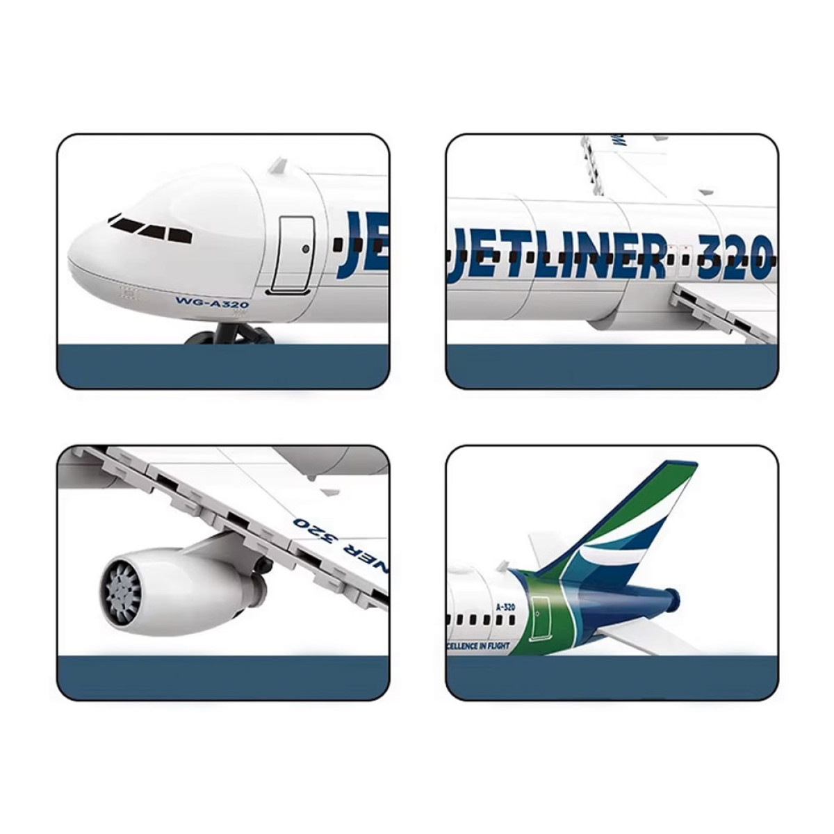 Konstruktorski bloki lidmašīnas Jetliner 320 modeļa būvēšanai ir piemēroti ikvienam bloku entuziastam un civilās aviācijas cienītājam. Šie bloki nodrošina daudz jautrības, un pabeigtais modelis var tikt novietots uz plaukta vai izmantots tālākai spēlei.