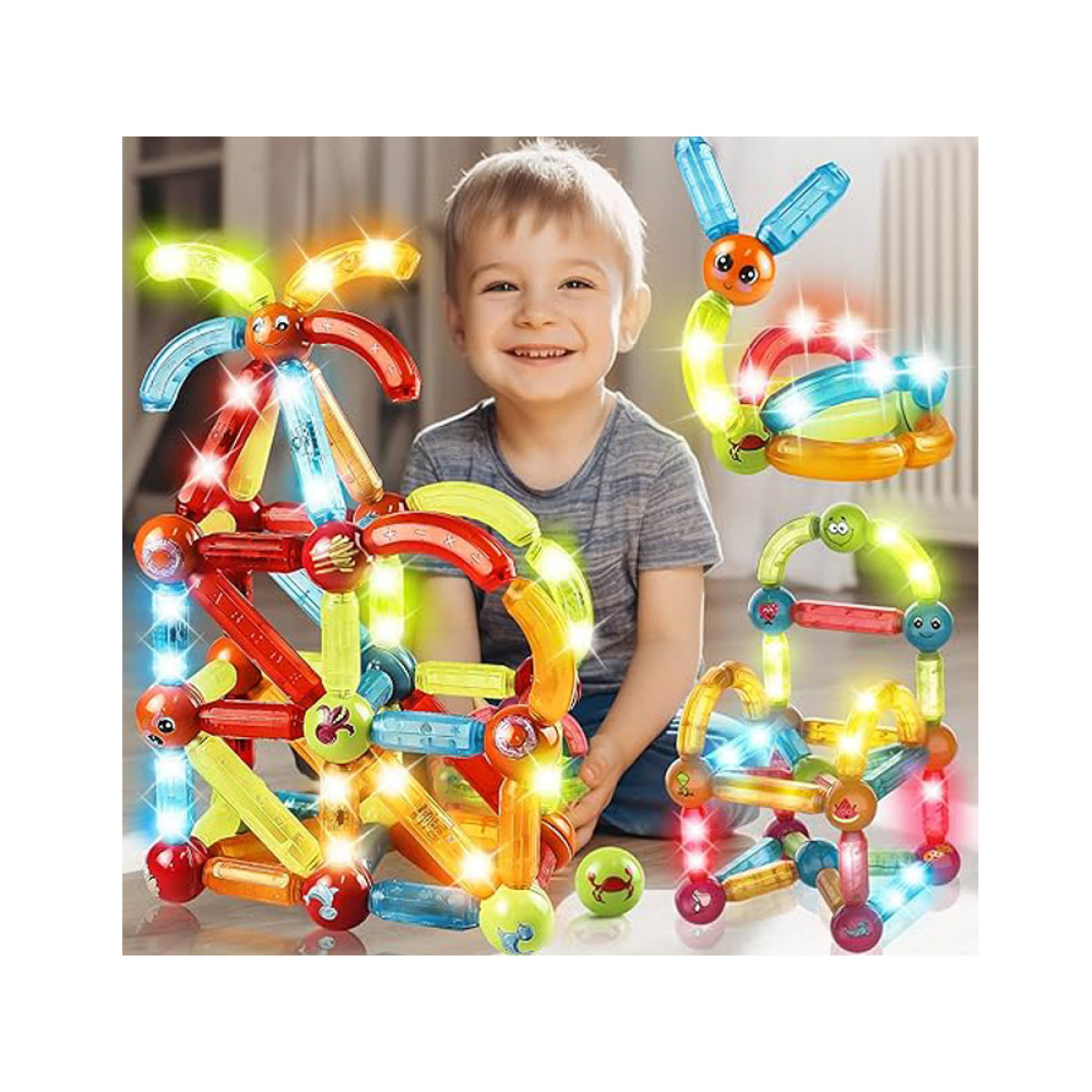 Krāsainie Magnētiskie Klucīši 3D ar Apgaismojumu 76 gab.
