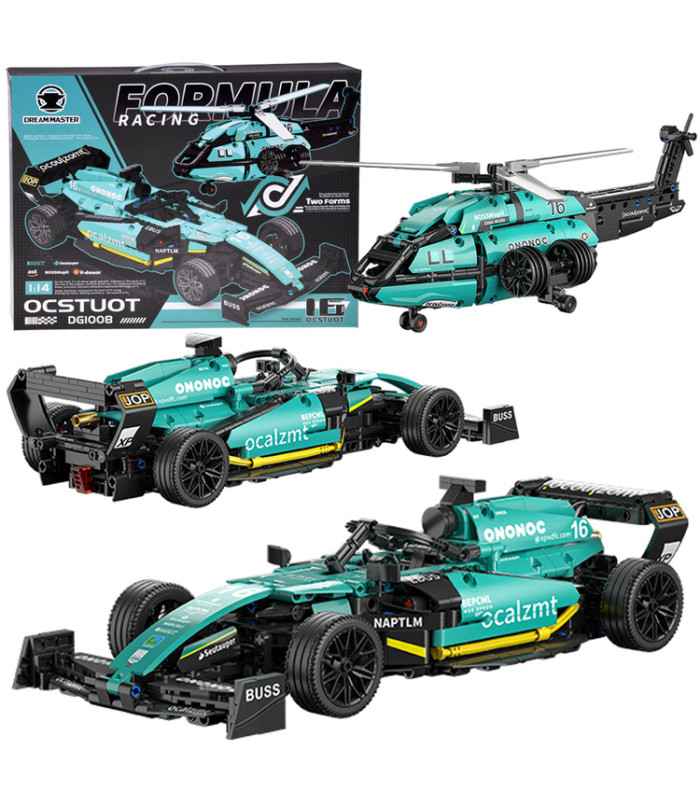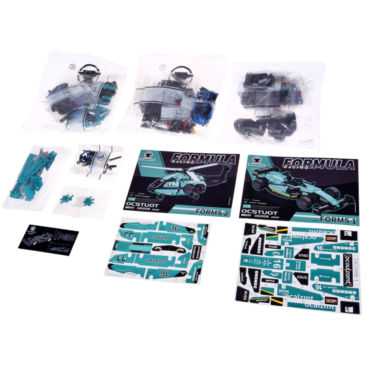 Tehniskās klucīši 2in1 Formula 1 Bolīds un Helikopters 736 gab. ar Uzlīmēm