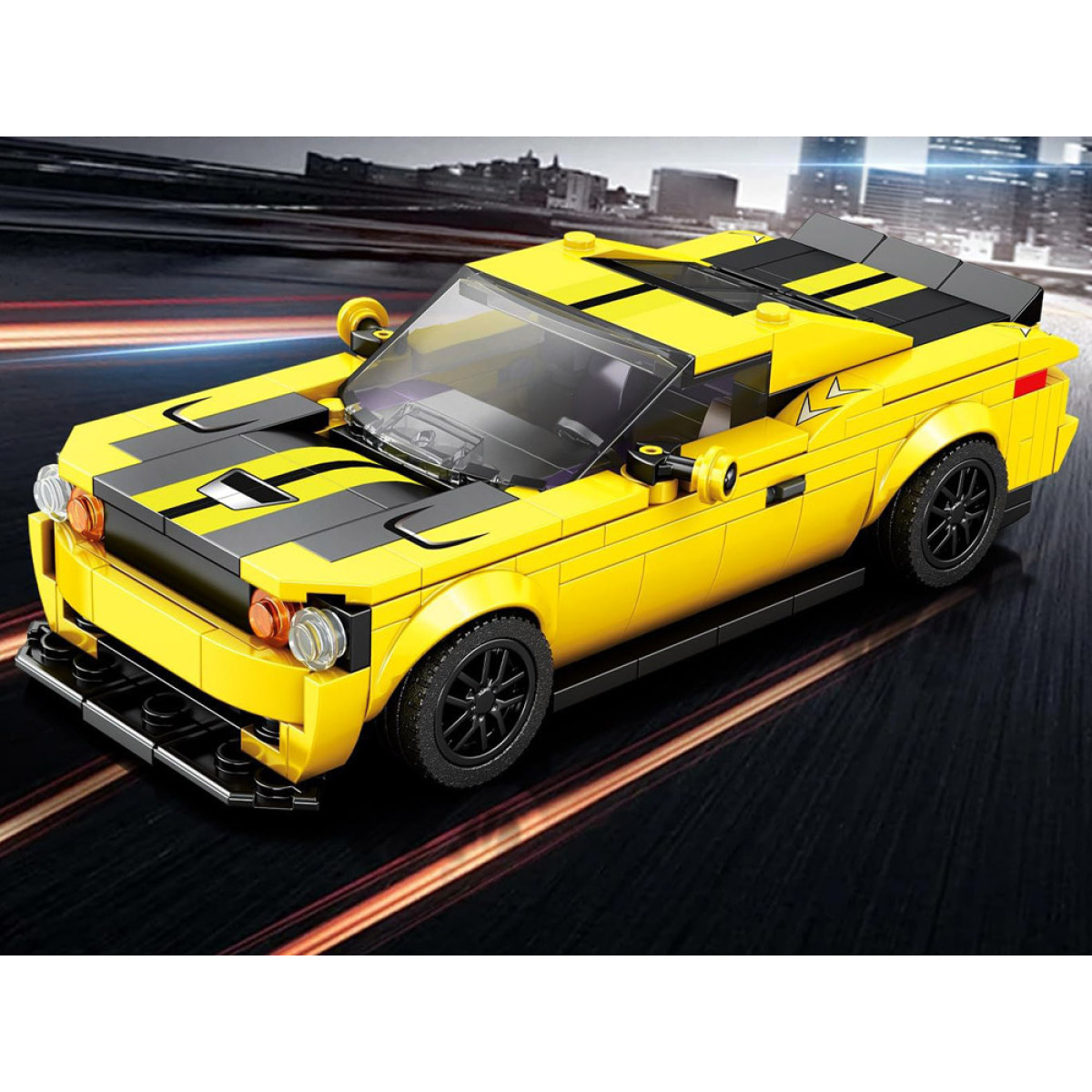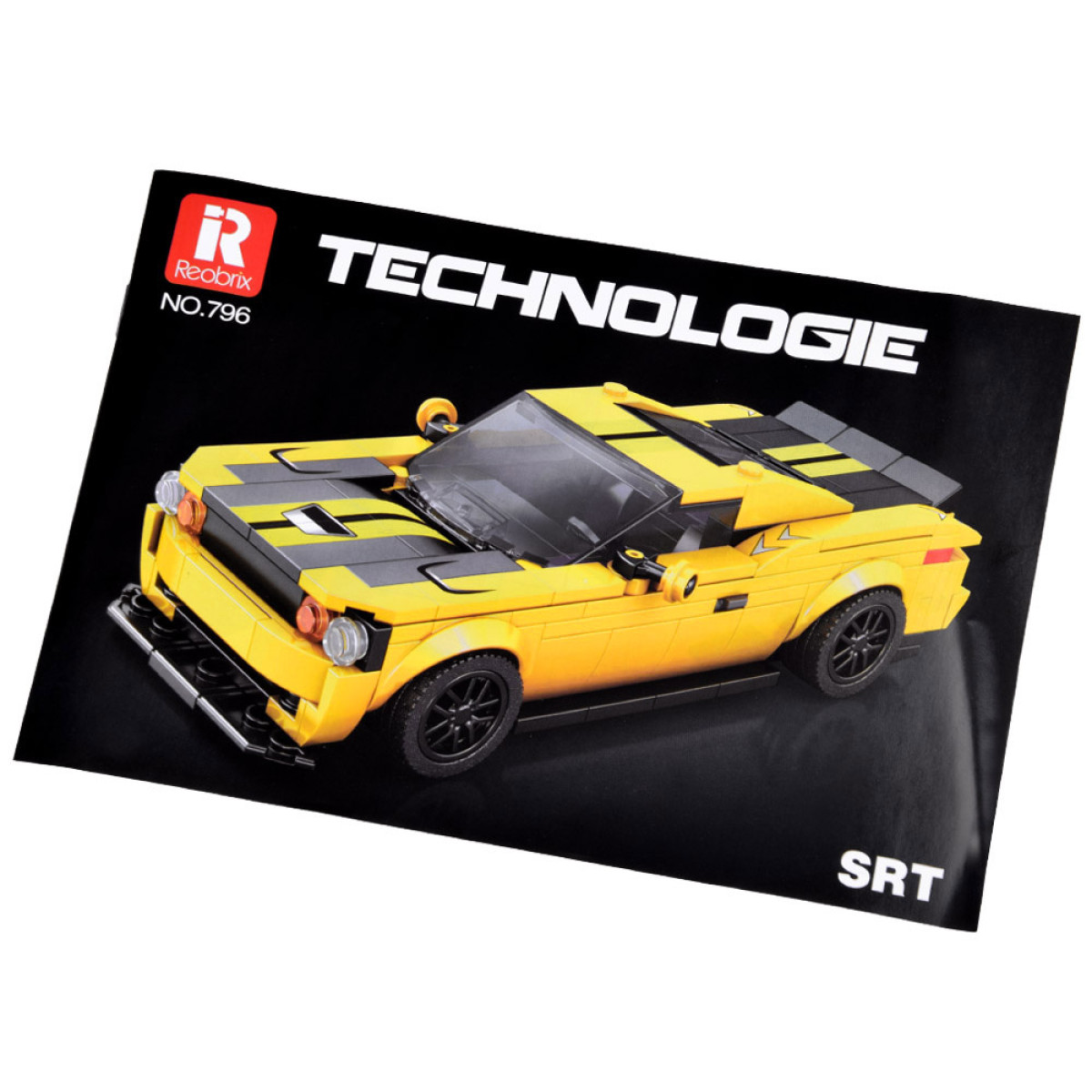 Tehnisko klucīšu komplekts dzeltenas sporta automašīnas būvēšanai ir ideāla dāvana automašīnu un modeļu celtniecības entuziastiem.