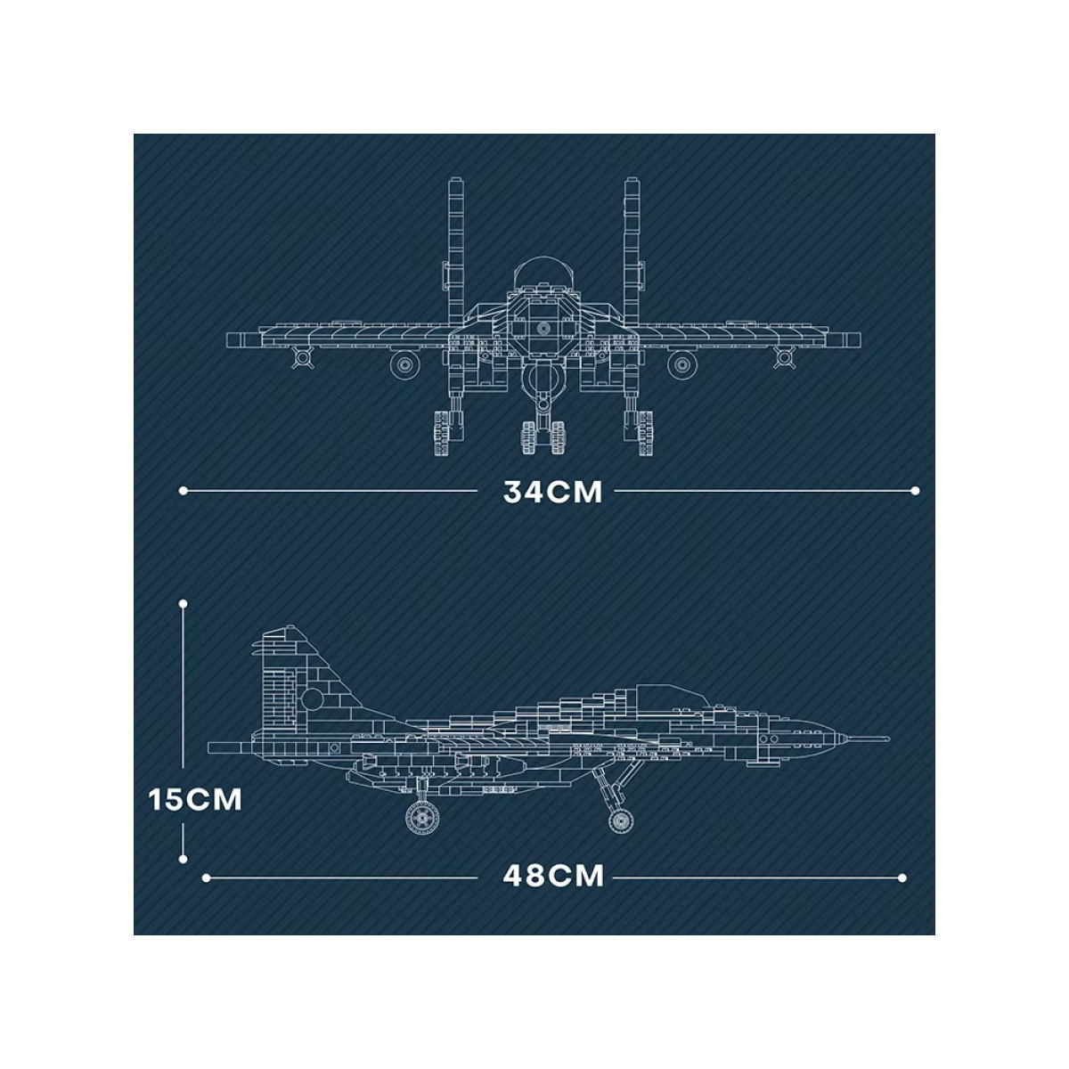 Sagatavotais modelis ir 48 cm garš, 34 cm plats un 15 cm augsts, kas ļauj apskatīt katru konstrukcijas detaļu - sākot ar raksturīgajiem spārniem un stabilizatoriem līdz realistiskām dzinēju gaisa ieplūdēm. Lielie izmēri padara modeli par ne tikai rotaļlietu, bet arī iespaidīgu eksponātu uz plaukta.