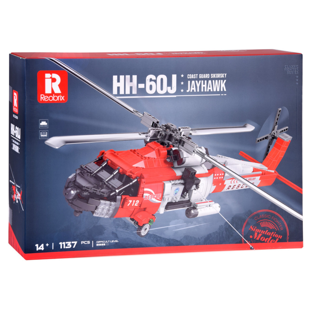 Tehniskās klucīši Sikorsky HH-60J Jayhawk 1137 detaļas ir ikonisks daudzuzdevumu, divu dzinēju vidējas distances helikopters, ko izmanto Amerikas Savienoto Valstu krasta apsardze meklēšanas un glābšanas misijām, likuma izpildei, kaujas gatavībai un jūras vides aizsardzībai. HH-60J apzīmējums tika modernizēts 2007. gadā uz Sikorsky MH-60T Jayhawk. Klucīši, no kuriem var uzbūvēt iespaidīgu speciālo uzdevumu helikopteru katram bērnam.