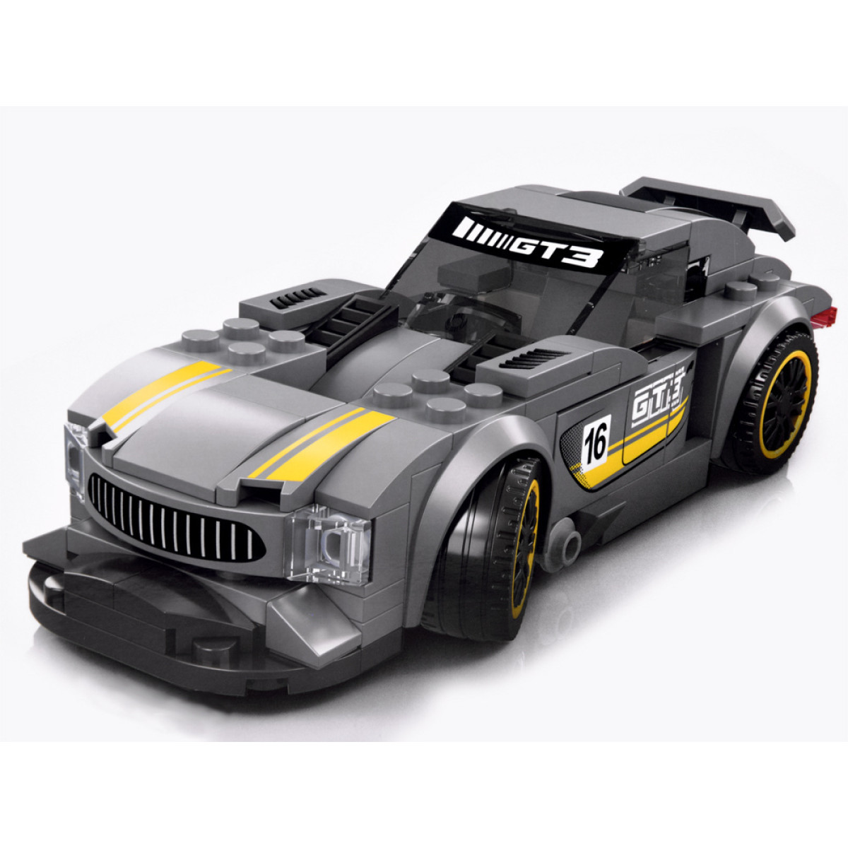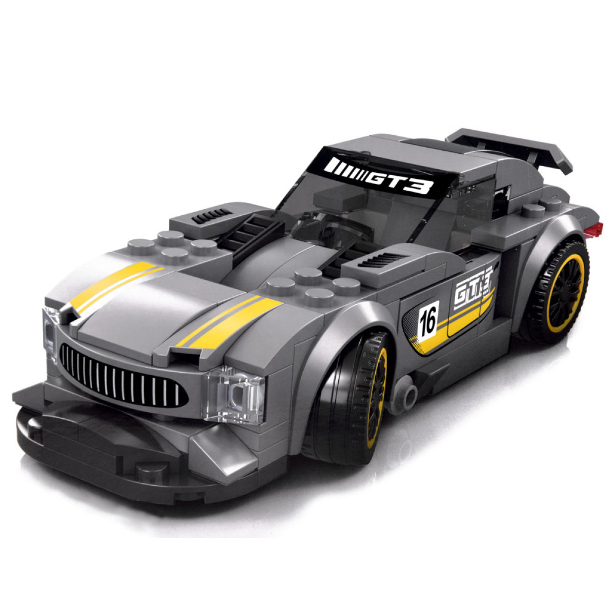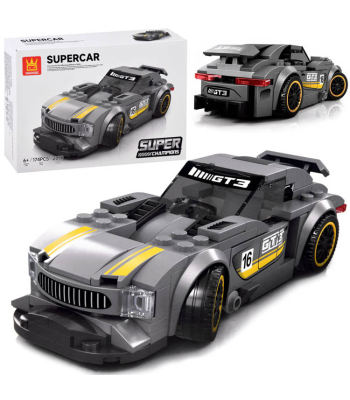 Tehniskās klucīši Sporta auto SUDRABA 174 elementi + uzlīmes