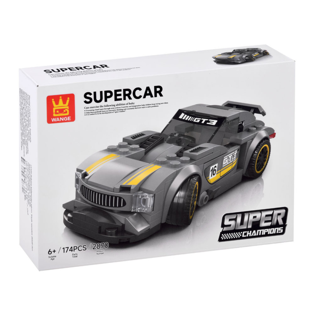 Tehniskie plastmasas klucīši ļauj uzbūvēt sapņu sporta auto. Klucīši ir viegli savienojami, droši un izturīgi. Komplektā pievienotās uzlīmes uzlabo galīgo rezultātu.
