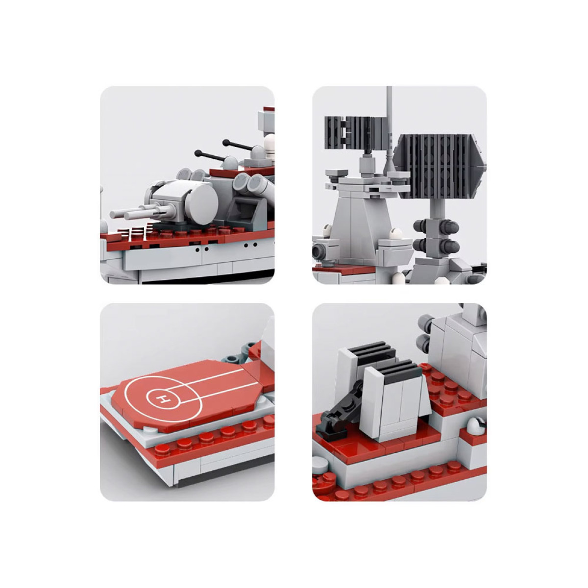 - Liels detaļu skaits (ieroči, lielgabali, radari) padara kuģi reālistisku