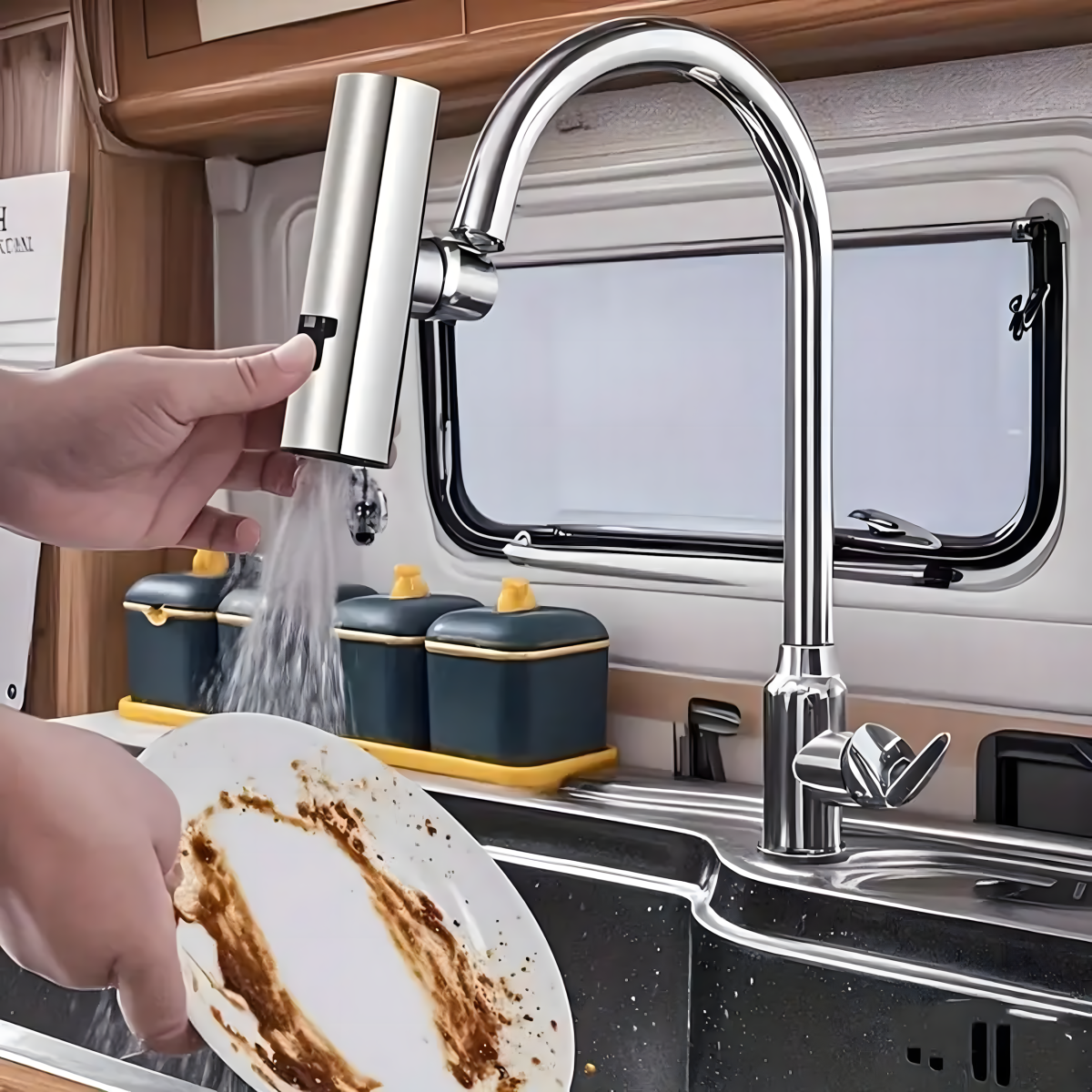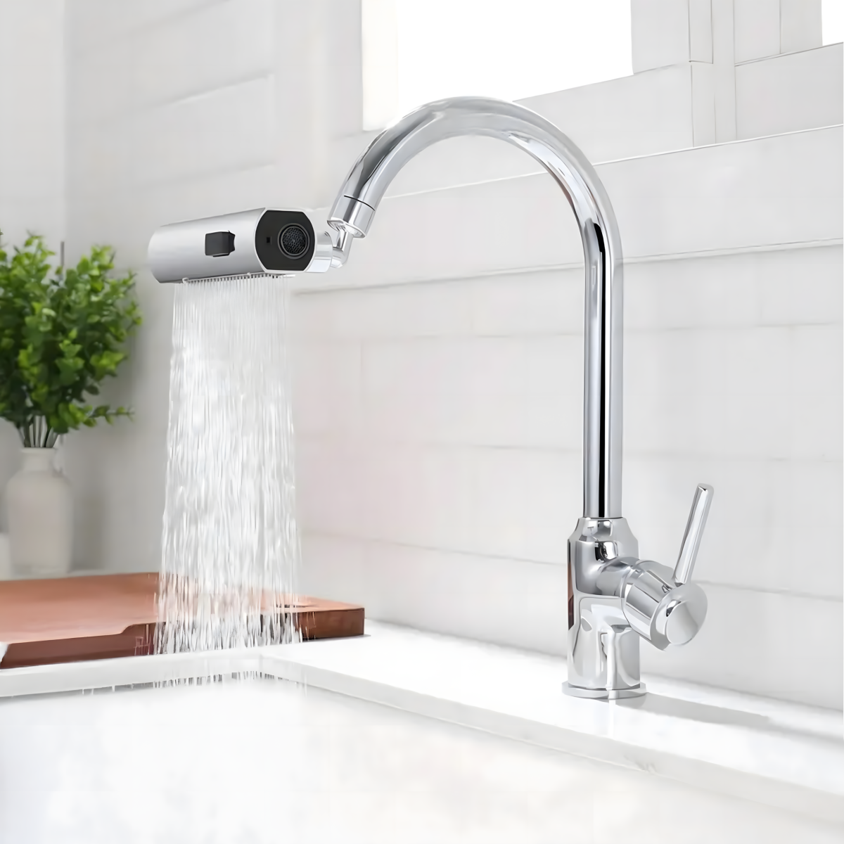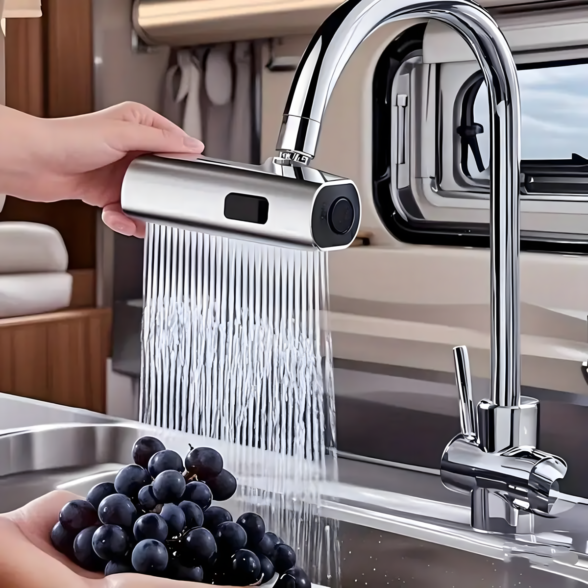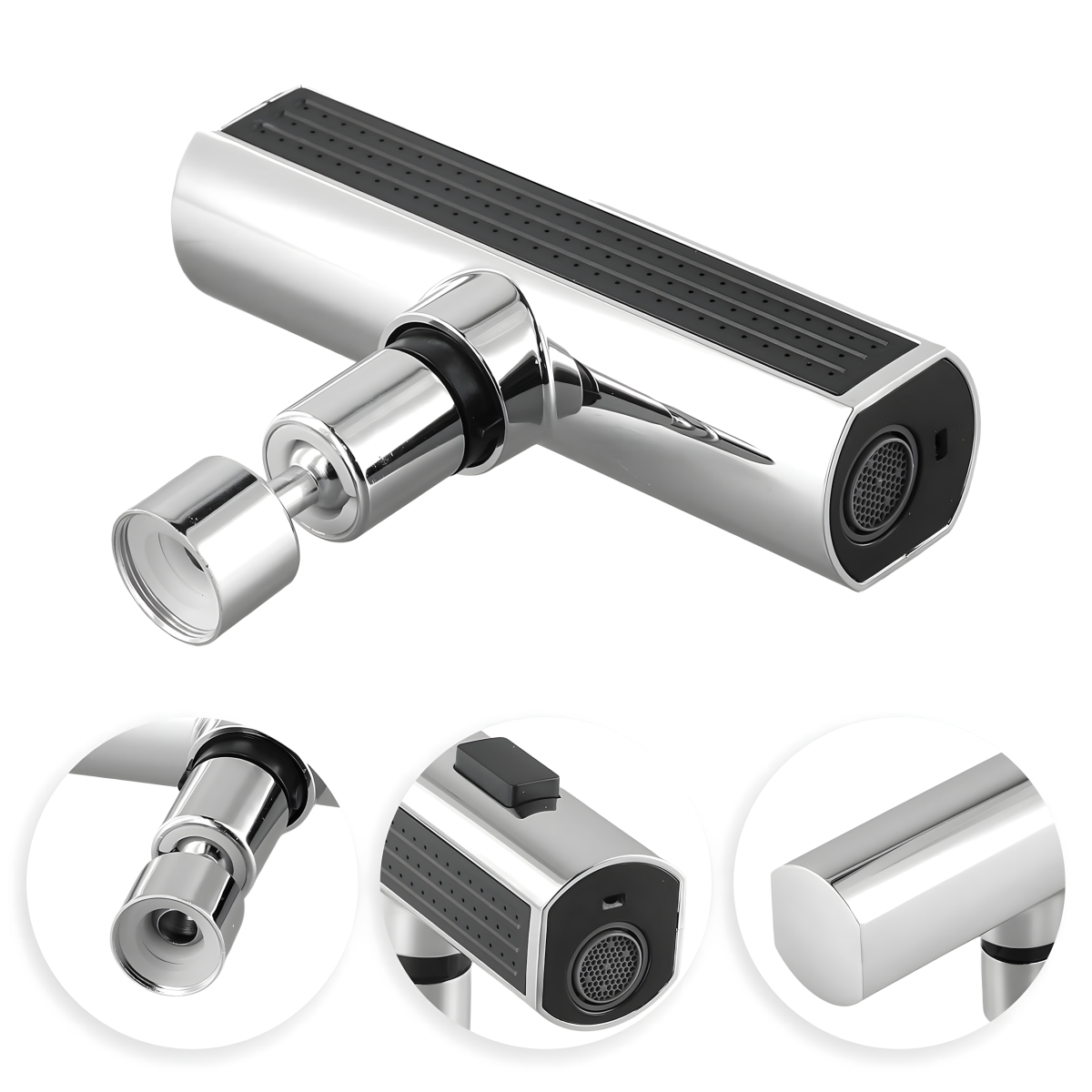 Praktisks papildinājums virtuves krānam, kas ļauj ērti regulēt ūdens plūsmu. Aprīkots ar perlatoru ūdens taupīšanai un adapteri, kas der lielākajai daļai krānu. Trīs plūsmas funkcijas: maigs miglains strūkls, spēcīga strūkla un duša – ideāli piemērots trauku, dārzeņu mazgāšanai un skalošanai. Vienkārša montāža un izturīga konstrukcija nodrošina ērtu ikdienas lietošanu.