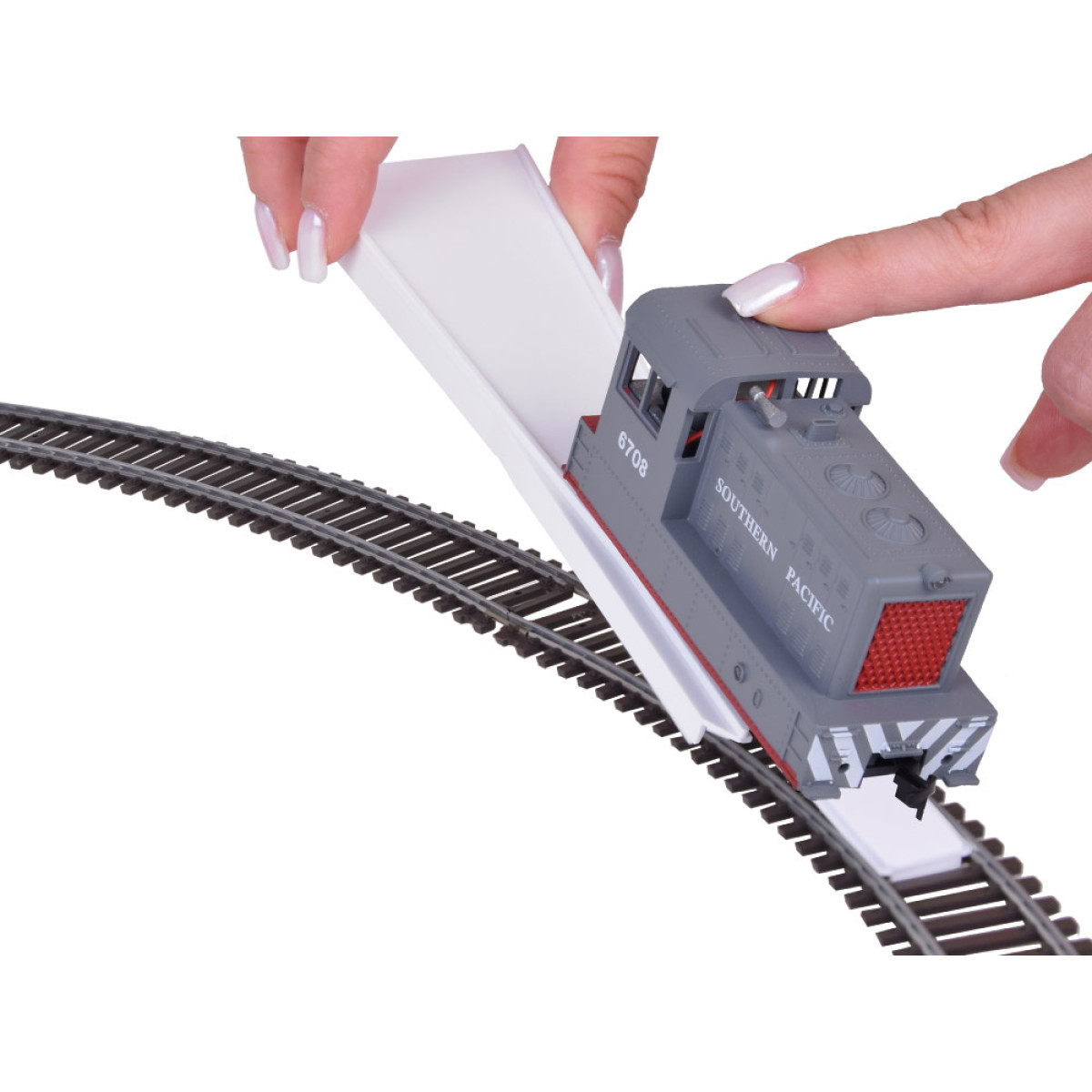 Metāla sliedes un plastmasas pamatne garantē konstrukcijas stabilitāti un izturību. Sliežu elementi ir izgatavoti ar detalizētu precizitāti, un precīzi gravētie koka struktūras imitējošie gulšņi padara visu ļoti reālistisku. Sliežu savienošanas sistēma balstās uz iestumtiem savienojumiem, tāpēc ir pārliecība, ka elementi nebūs atvienoti braucot. Sliedes var savienot ar citiem šīs sērijas komplektiem, kas pieejami mūsu veikalā. Komplektā ietilpst arī uzsliedējs, kas atvieglo ratu novietošanu uz sliedēm.