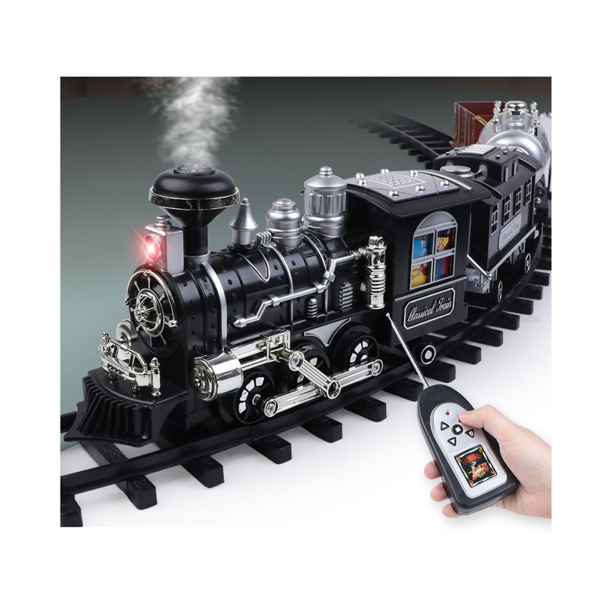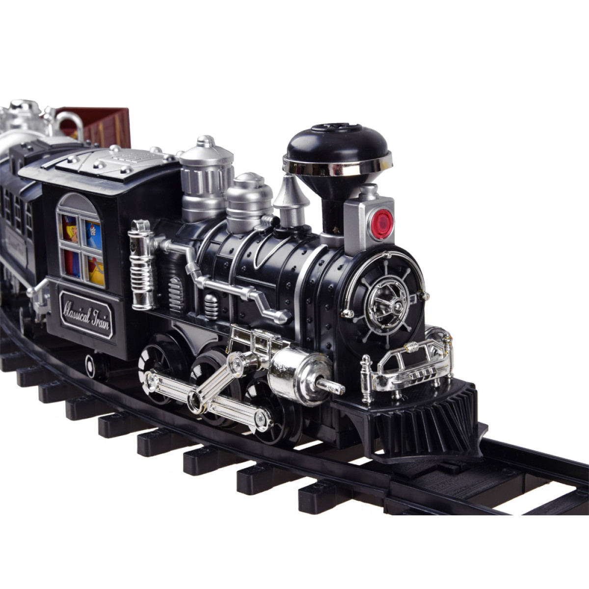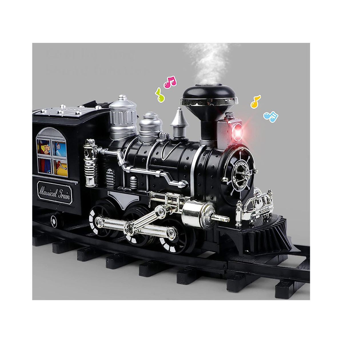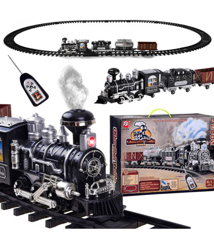 Liela dzelzceļa lokomotīve ar skaņas un gaismas efektiem, dūmojoša no skursteņa, pārsteigs katru mazo mašīnistu. Lokomotīve ir rūpīgi izstrādāta, pievēršot uzmanību sīkākajām detaļām, un to darbina klasisks tvaika dzinējs, kas braucot rada lokomotīves skaņas. Priekšpusē ir brīdinājuma gaisma, un, piepildot tvertni ar ūdeni, no skursteņa sāks izdalīties dūmi, gluži kā īstam tvaika dzinējam. Braucot, lokomotīve rada skaņas, kas raksturīgas braucošam vilcienam: svilpe, ratu klaudzēšana, zvans utt. Šis brīnišķīgais dzelzceļa modelis ar vagoniem noteikti iepriecinās katru jauno modeļu dzelzceļu fanu.