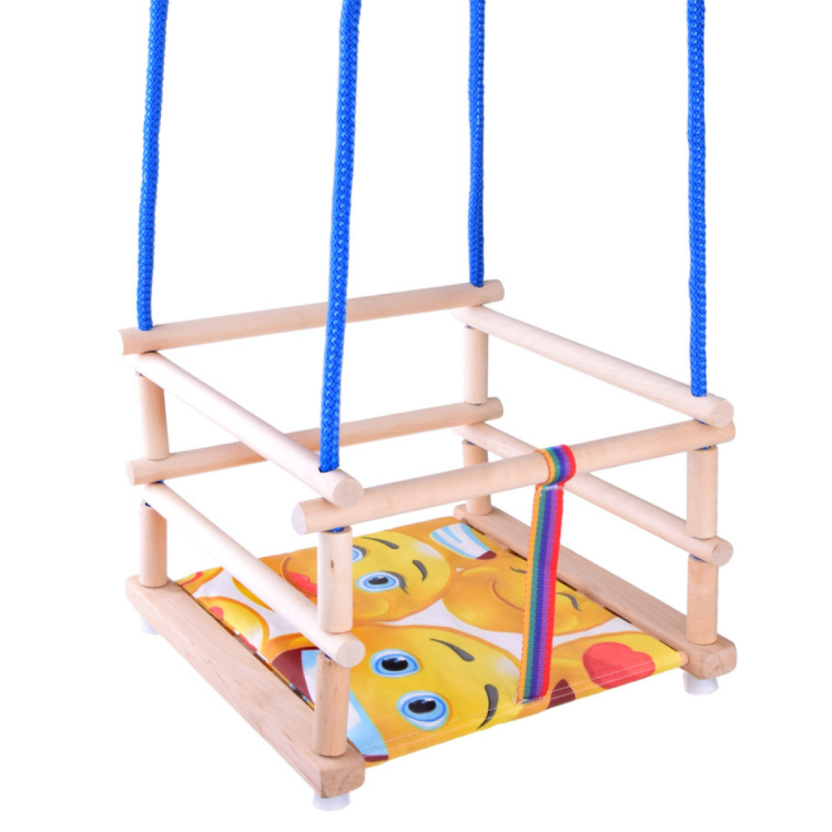 Šūpolīte ir izgatavota no dižskābarža koka un ir lakota ar ekoloģisku ūdens bāzes laku. Drošībai ir papildus stiprināta ar lenti, kas novērš bērna izkrišanu no šūpolēm. Ātra montāža - virves ir aprīkotas ar plastmasas stiprinājumiem, kas ļauj viegli piekārt un noņemt šūpolītes no āķiem. Komplektā ietilpst arī mīksts sēdeklis (spilvens).