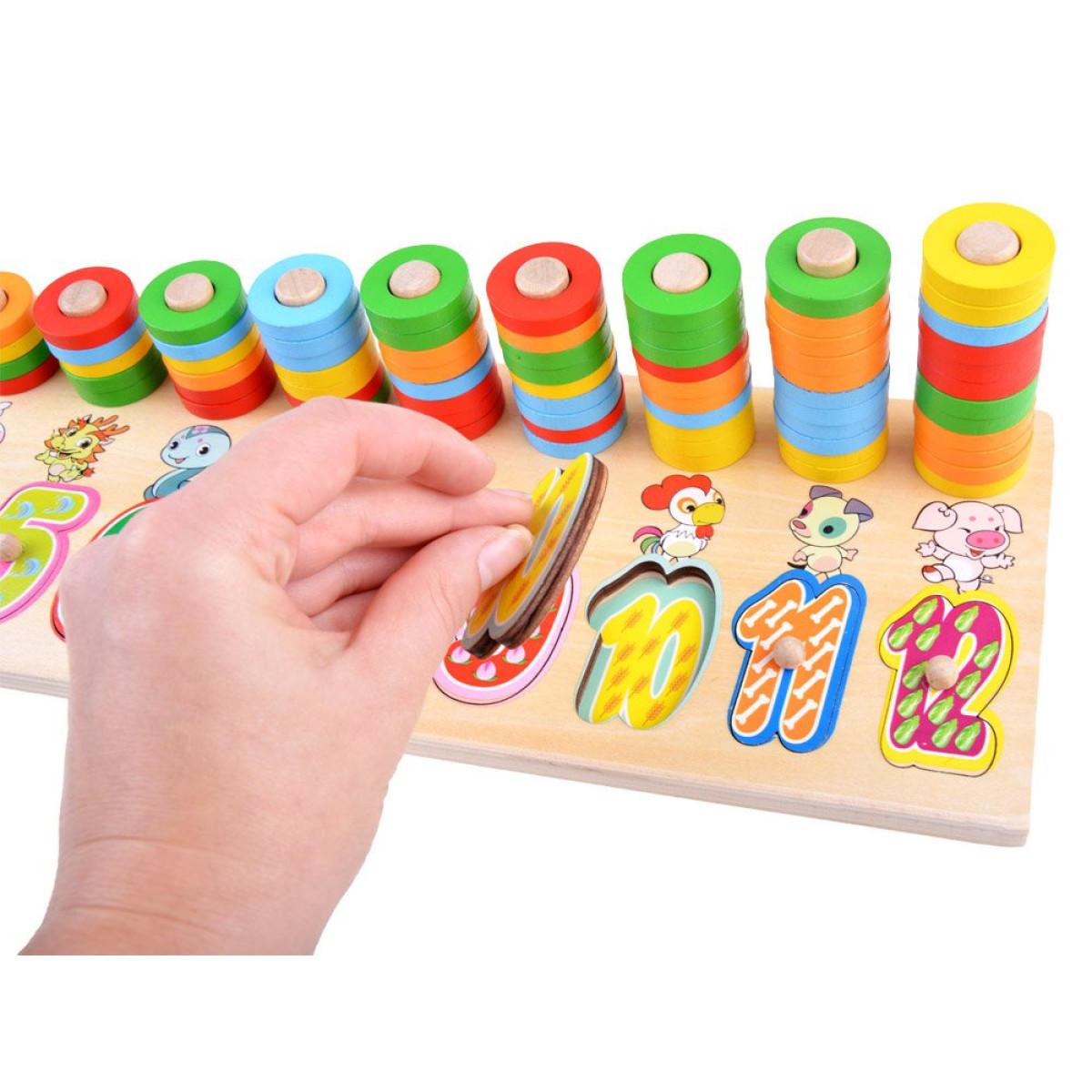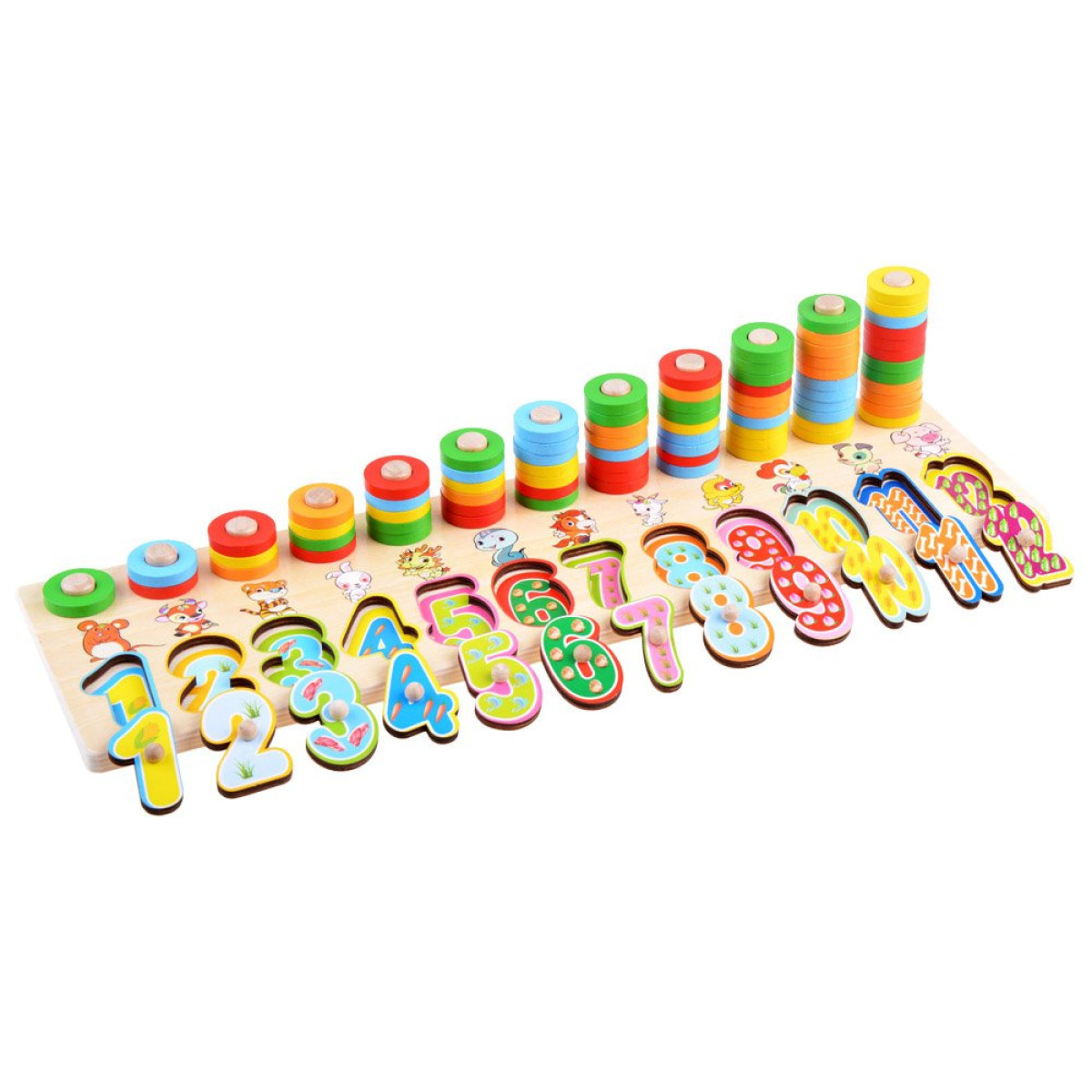 Koka puzle ar cipariem un dzīvnieciņiem ir lielisks veids, kā bērniem iemācīties ciparus, krāsas un dzīvnieku nosaukumus, izmantojot spēles. Šis ir vienkāršs un patīkams veids, kā apgūt un nostiprināt skaitļus, pielāgojot formas un krāsas pie dēļa un iepazīstot to vērtību, liekot riņķus uz atbilstošajiem stabiņiem. Cipari ir lieli un krāsaini, kas atvieglo bērnam tos sakārtot un izņemt no dēļa, savukārt dzīvnieciņi palīdzēs mazajam iemācīties, ko katrs dzīvnieks vēlas ēst. Visi elementi ir piemēroti mazai bērna rokai. Neapšaubāma priekšrocība ir tā, ka komplekts ir pilnībā izgatavots no koka, padarot to drošāku, izturīgāku un videi draudzīgāku nekā plastmasas rotaļlietas.