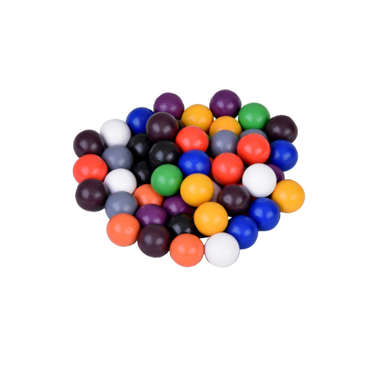 - 50 krāsainas bumbiņas (zilā, sarkanā, zaļā, dzeltenā, baltā, oranžā, violetā, pelēkā, melnā, brūnā)