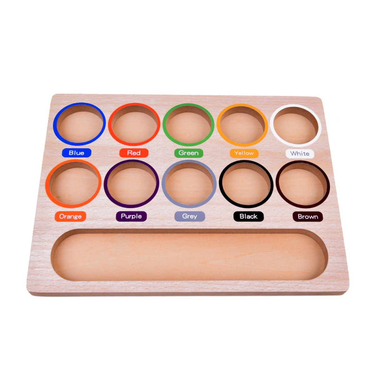 - koka paliktnis ar 11 caurumiem un krāsu nosaukumiem angļu valodā