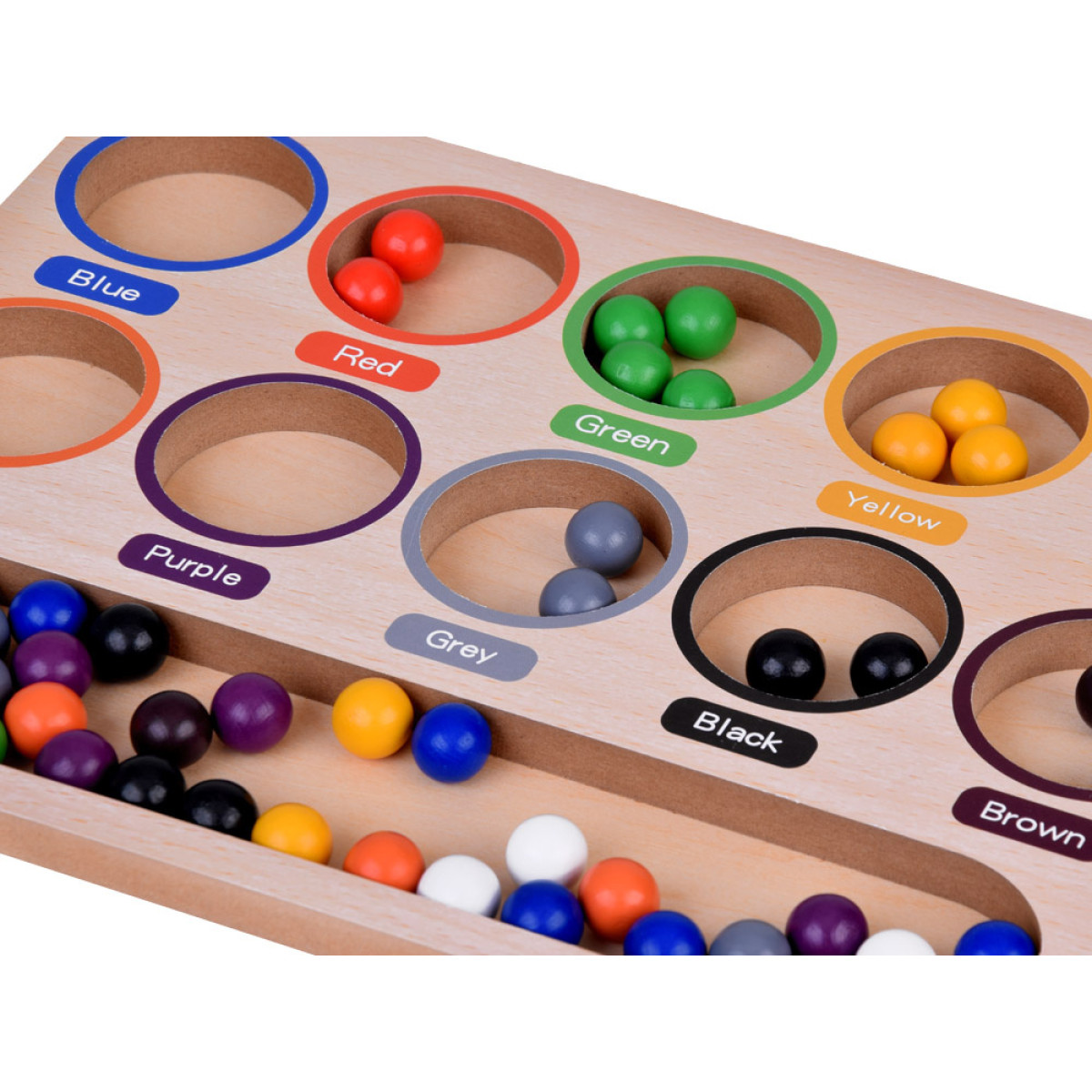 Šis krāsainais koka bumbu komplekts ar plāksni un caurumiem ir ideāla dāvana bērniem, kuri mīl radošas spēles. Izglītojošā rotaļlieta nodrošinās daudz stundu aizraujošas izklaides, un patīkamās krāsas papildu motivēs mazuli spēlēties.