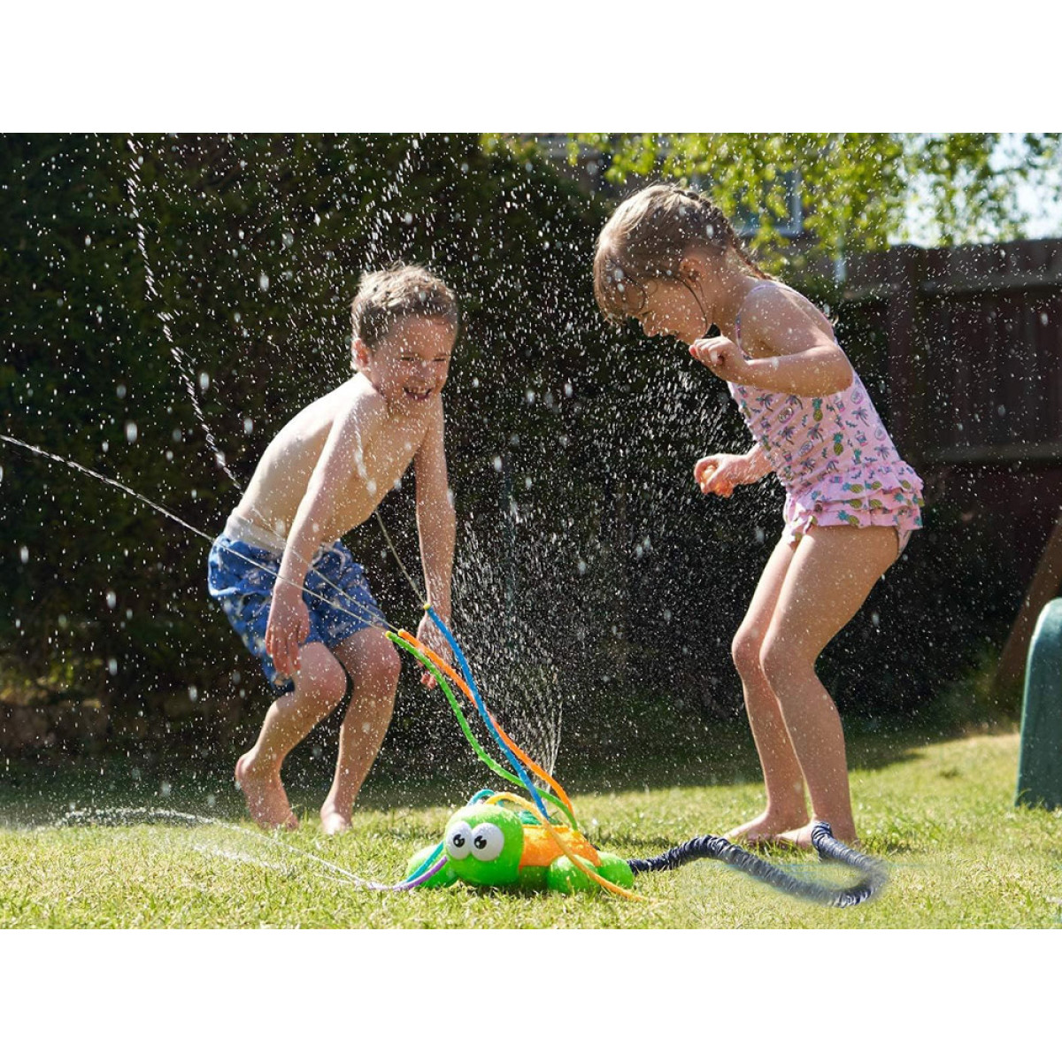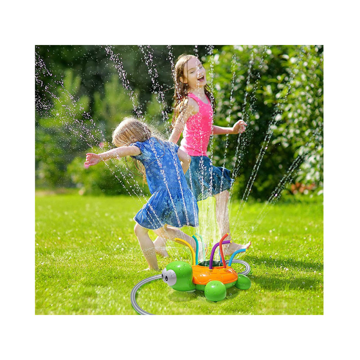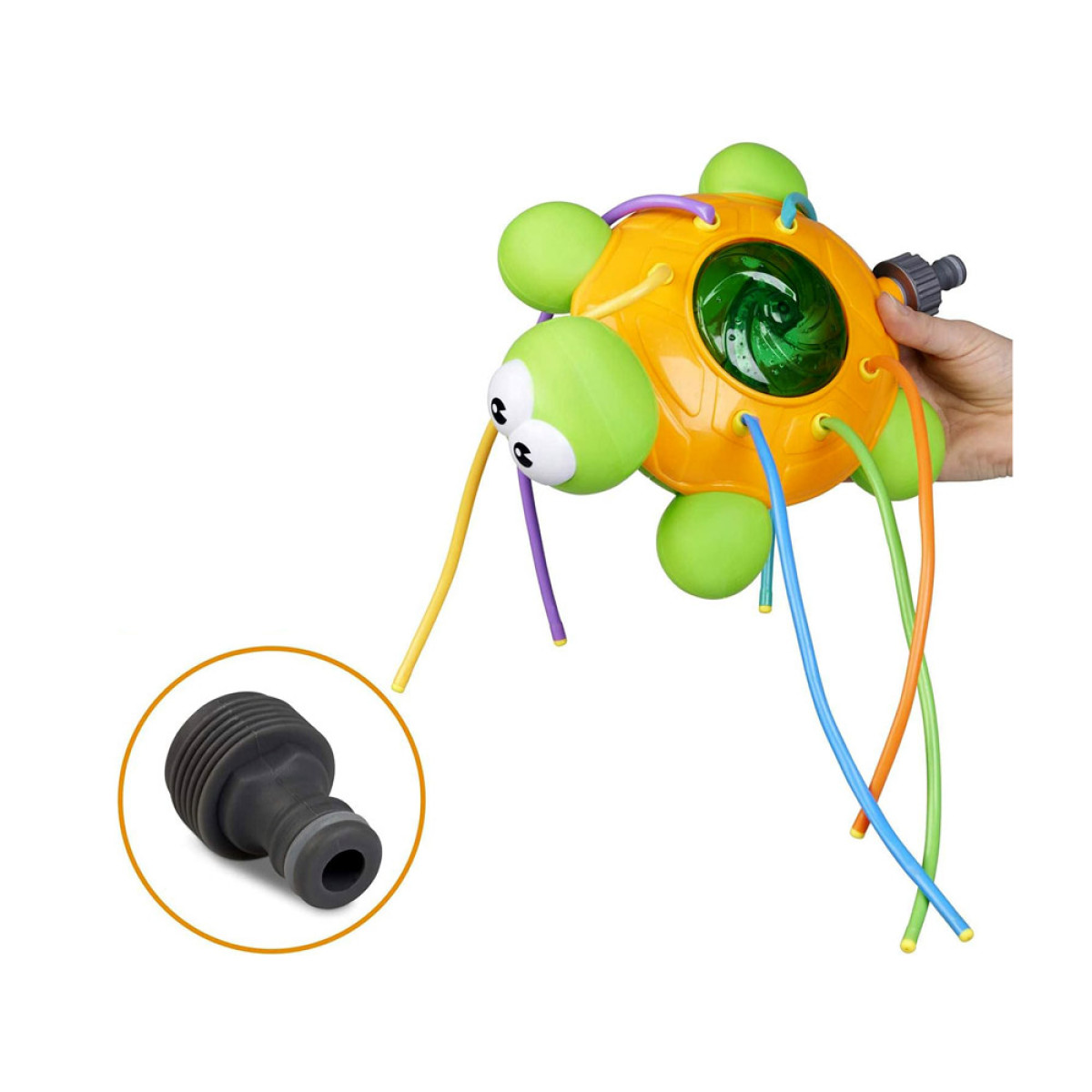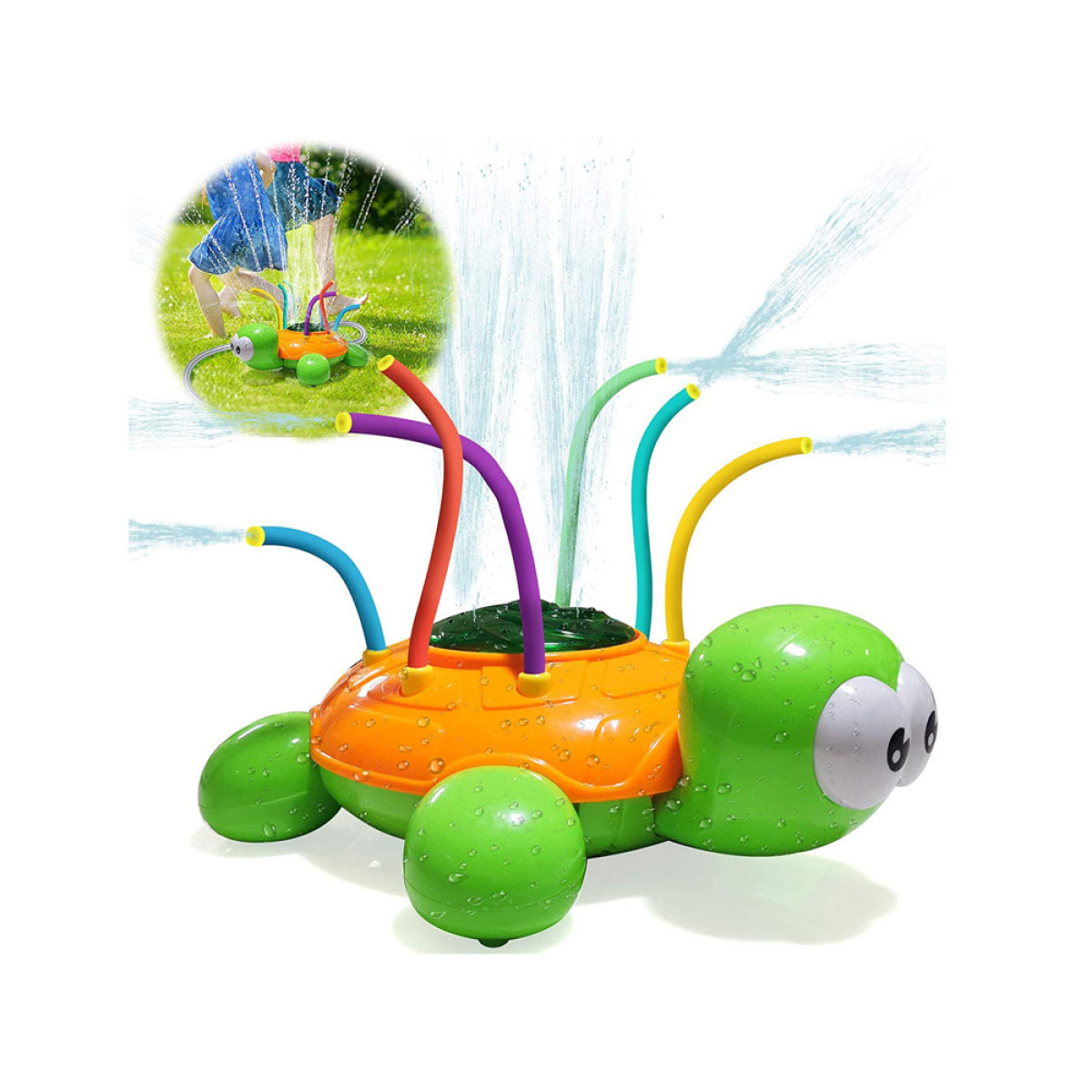 Zaļi oranžs bruņurupucis ar krāsainām, elastīgām caurulēm smidzināšanai nodrošinās daudz jautras izklaides karstā dienā. Strūklaka, kas rodas, pieslēdzot parasto dārza šļūteni pie bruņurupuča, nodrošinās daudz smieklu, kustību un brīnišķīgu izklaidi. Ūdens smidzinātājs ir viegli uzstādāms un to var pieslēgt patstāvīgi pie jebkuras standarta dārza šļūtenes un krāna, regulējot ūdens spiedienu krānā, nodrošināsiet spēcīgāku vai maigāku smidzināšanu.