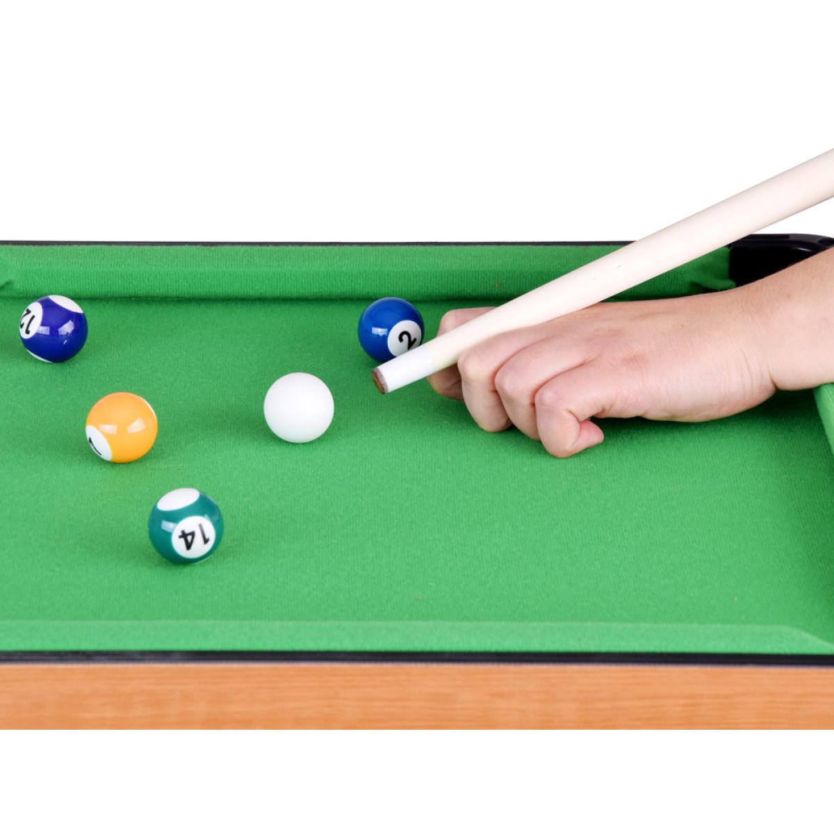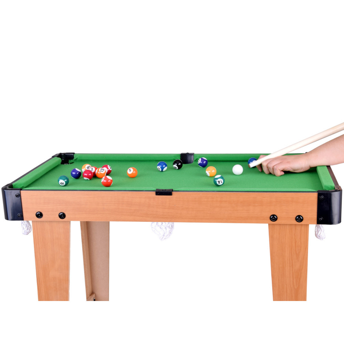 Izmērs 73,5 x 40,5 x 59 cm padara to kompaktu un piemērotu spēlēm mājās. Tajā pašā laikā tas ir pietiekami liels, lai bērni justos kā uz īsta biljarda galda. Zaļa spēles virsma piešķir klasisku izskatu, atgādinot profesionālus biljarda galdus, un stabila konstrukcija nodrošina stabilitāti spēles laikā.