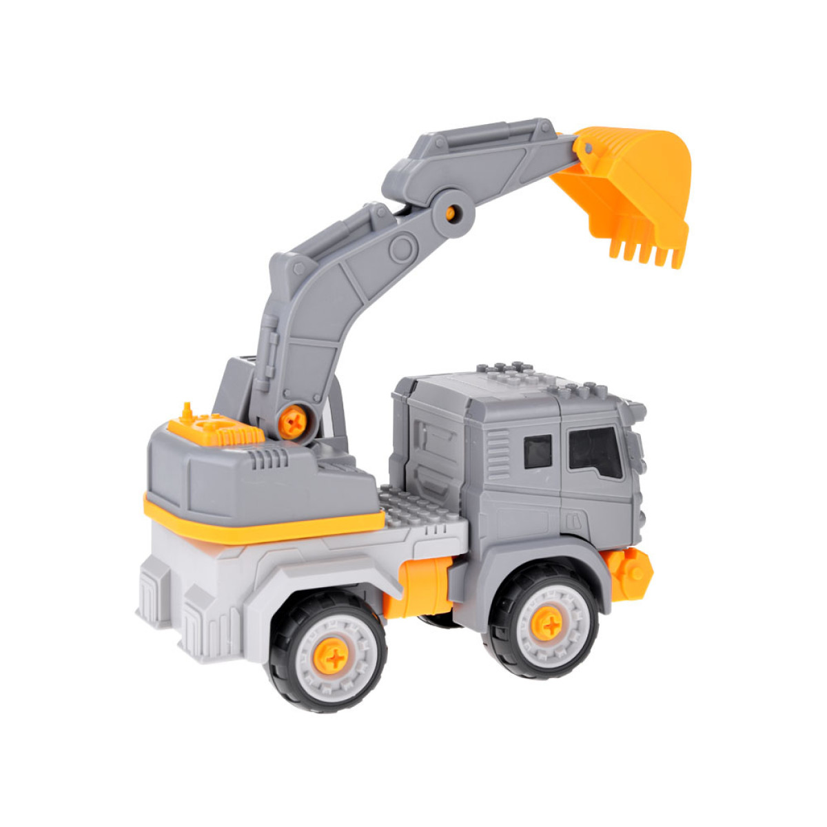 - Auto ar atskrūvējamām detaļām: riteņi, pārsegs, kabīne ar ekskavatoru un roka ar lāpstu.