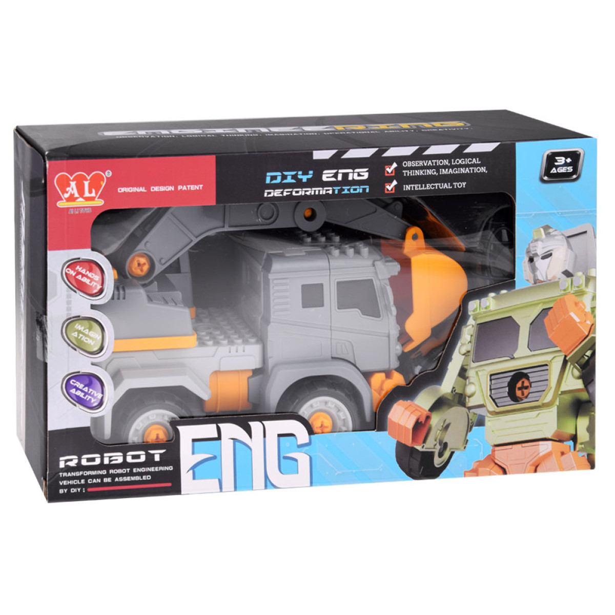 Lai pārveidotu auto par robotu, jāatskrūvē kabīne ar ekskavatoru, jāpaceļ priekšējie riteņi uz sāniem - veidojot rokas un atbrīvojot galvas izvilkšanas bloķēšanu. Jāpieliec priekšējā kabīnes daļa (tagad ir robota ķermenis), un tad jānoņem, izvelkot uz aizmuguri auto kravas daļu, atbrīvojot kājas. Tikai jāizliek kājas un gatavs! Transformējot auto par robotu, nav nepieciešams atskrūvēt riteņus, bet tas ir papildus rotaļlietas pievilcība.