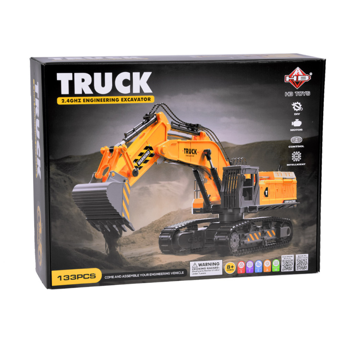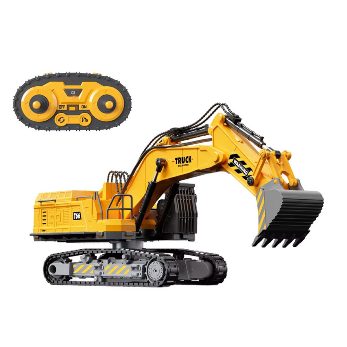 Komplektā atradīsiet arī 2,4 GHz tālvadības pulti, kas ļauj pilnībā kontrolēt ekskavatoru!