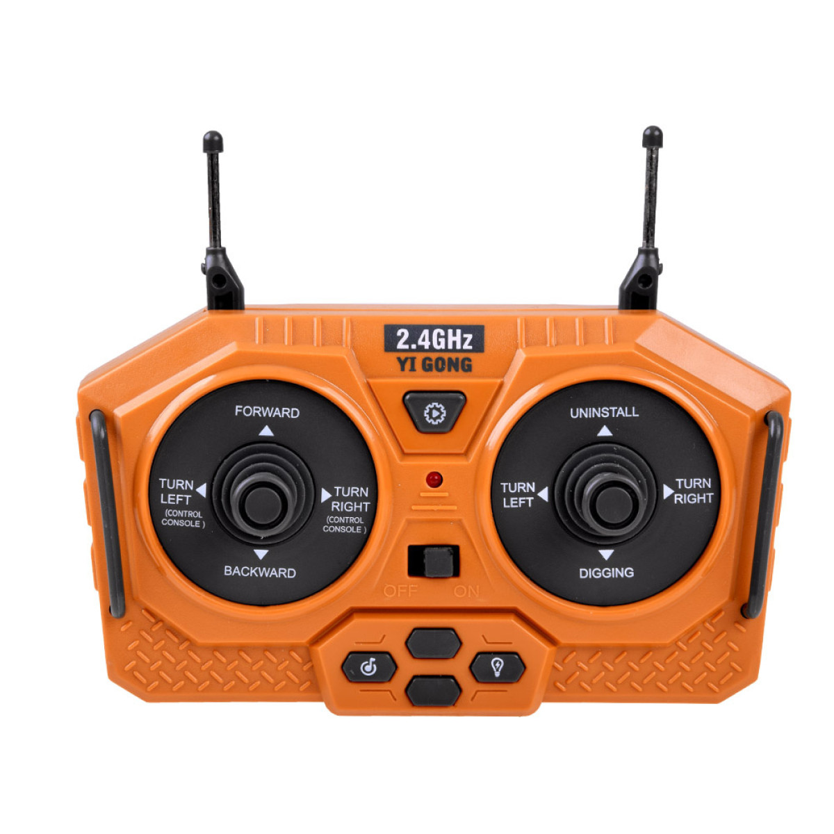 Rotaļlieta ir izgatavota no plastmasas ar kustamu kausu un gumijas kāpurķēdēm. Rotaļlieta piedāvā skaņas efektus: motora darbs, gaismas efekts. Tālvadības pults kontrolē kausa kustību uz augšu un leju. Ekskavators pārvietojas uz priekšu, atpakaļ, pagriežas pa labi un pa kreisi. Rotaļāšanās ar šo rotaļlietu nodrošina lielisku izklaidi katram mazam bērnam.