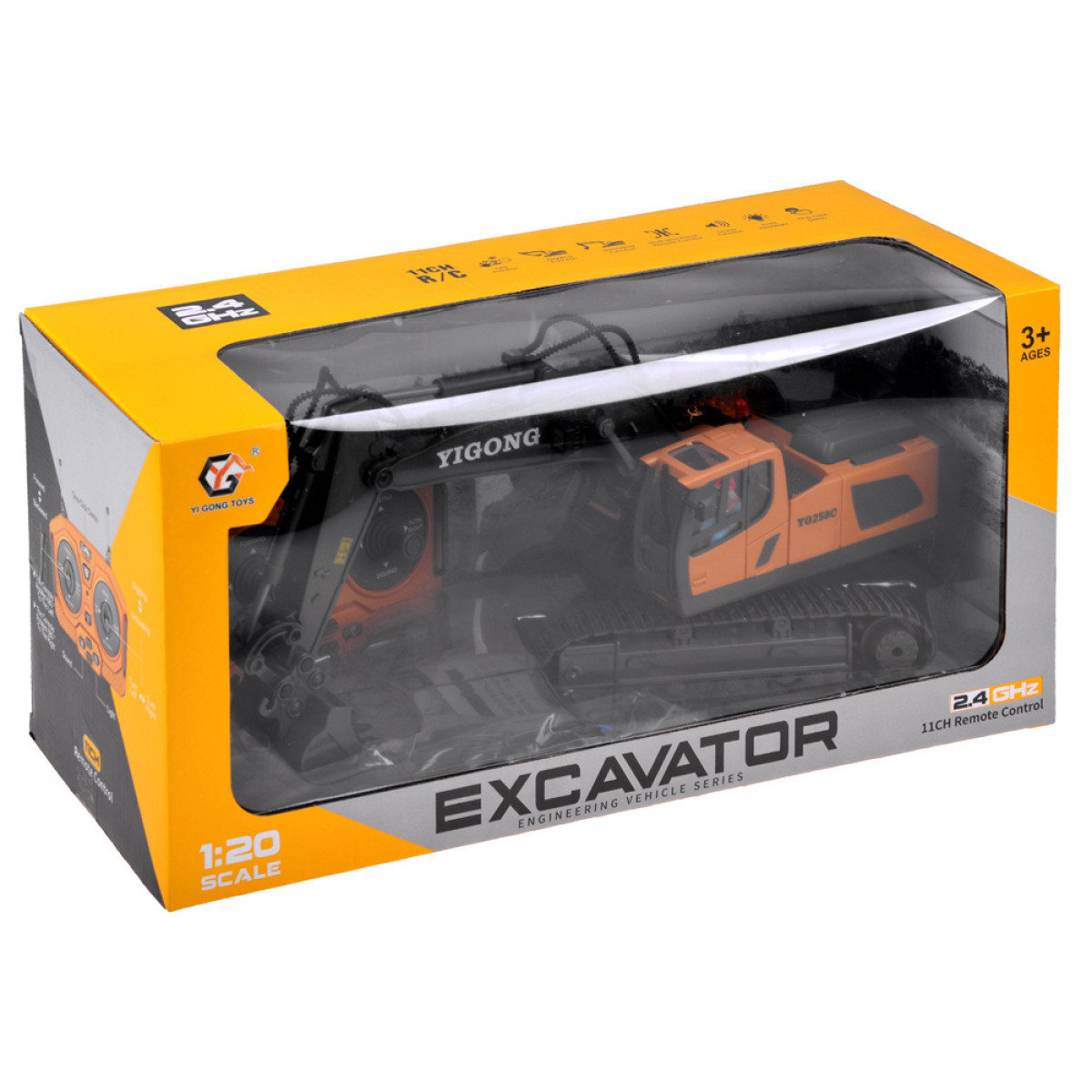 Reālistisks ekskavators ar 2,4 GHz tālvadību, kas nodrošina lielisku izklaidi katram mazam smagās tehnikas vadītājam.