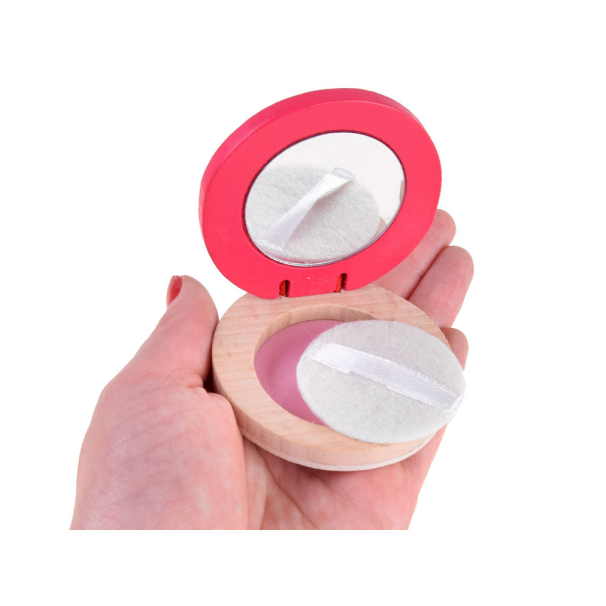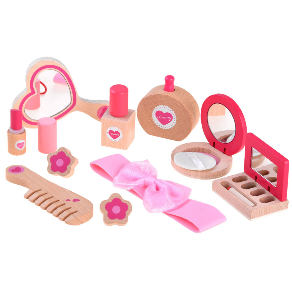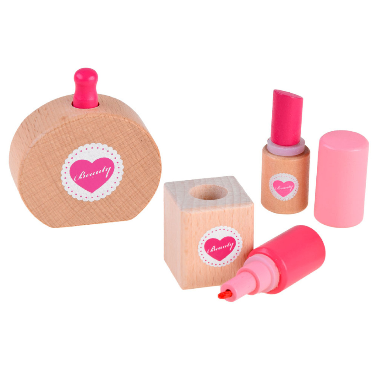 Šis stilizācijas komplekts satur visu, kas vajadzīgs mazai vizāžistei skaistumkopšanas salonā. Rotaļlieta attīsta radošumu, precīzas kustības un lomu spēļu prasmes. Komplektā ir koka elementi un aizverams kosmētikas maciņš, kas ļauj piederumus glabāt kārtīgi un droši. Produkts izstrādāts, domājot par bērna mazajām rociņām. Izturīgā un precīzā izgatavošana bez asām malām padara rotaļlietu drošu ikdienas lietošanai. Šī rotaļlieta iepriecinās katru mazo princesi un palīdzēs izveidot savu skaistuma stūrīti.