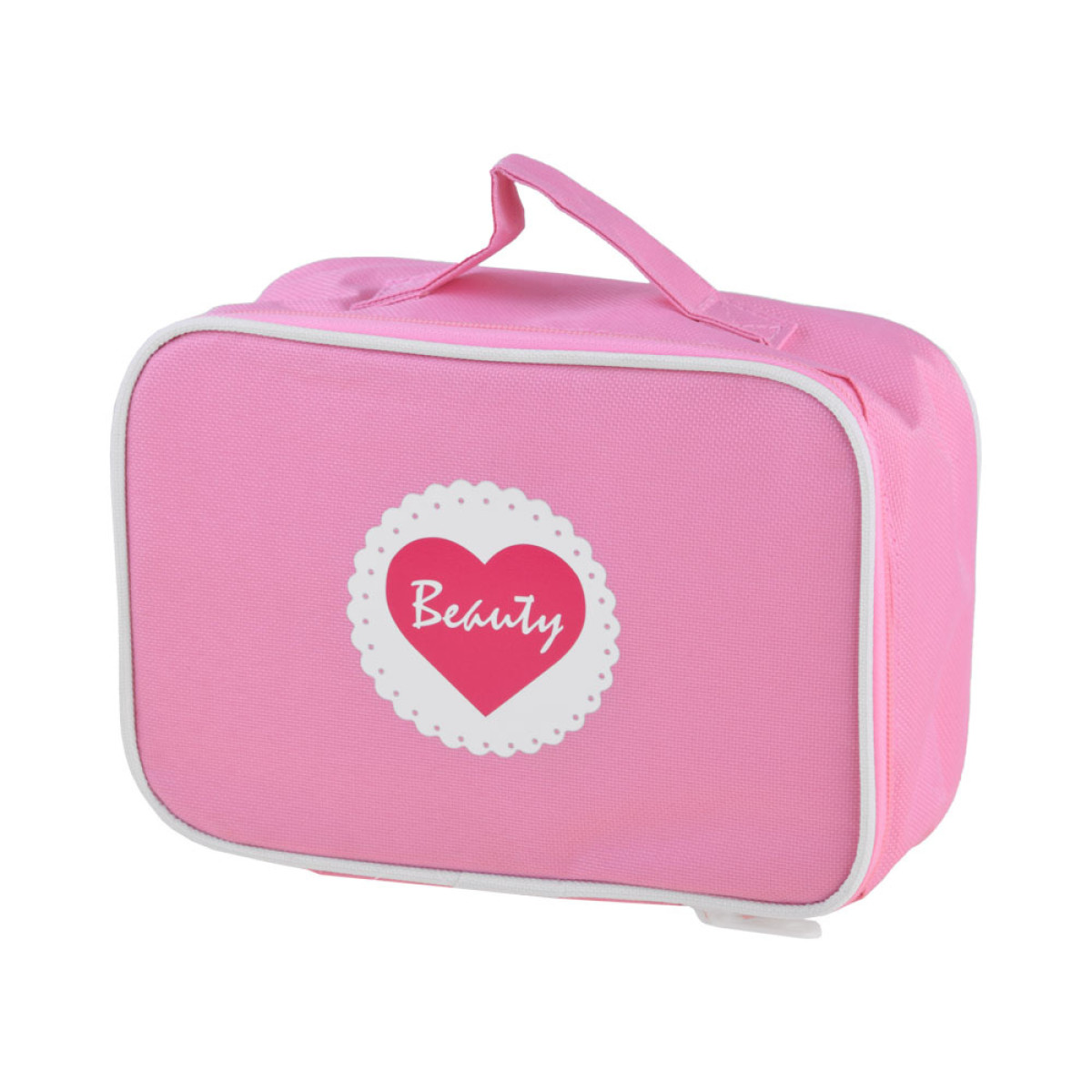- rozā auduma kosmētikas maciņš ar rāvējslēdzēju