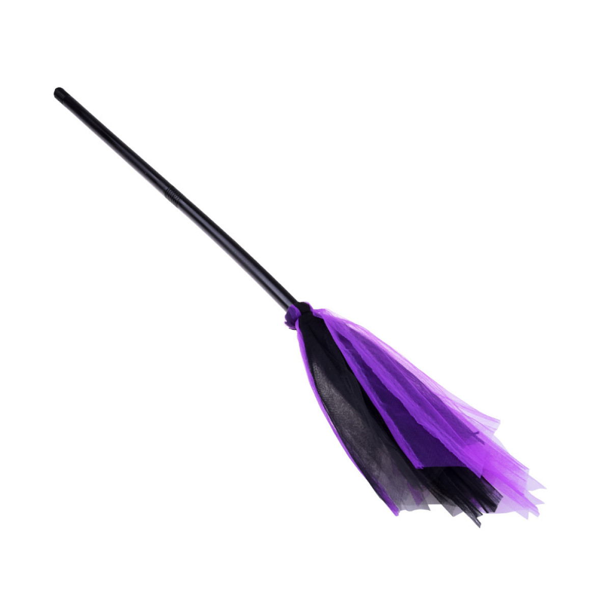 Tērpu papildina arī slotiņa ar plastmasas rokturi un purpursarkaniem-melniem auduma gabaliem roktura galā (lai ragana varētu krāšņi izskatīties).