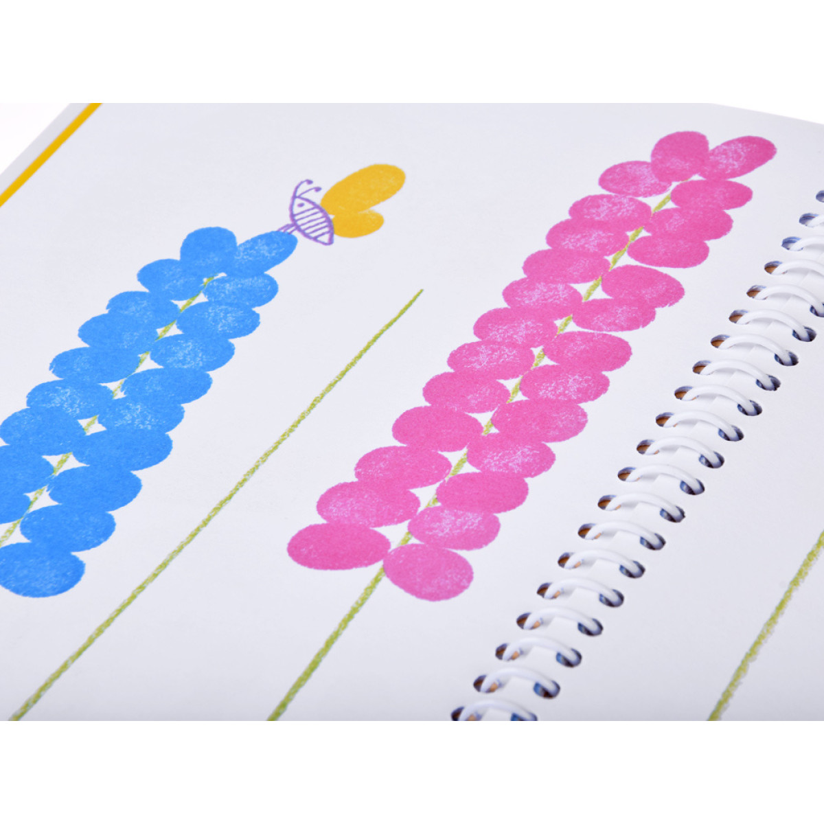 Atklāj brīnišķīgo dabas pasauli... ar pirkstiņiem! Šī krāsainā kreatīvā pirkstu krāsošanas grāmatiņa piedāvā ne tikai lielisku izklaidi, bet arī ir brīnišķīgs rīks, kas veicina Tava bērna attīstību. Pateicoties dārza un ziedu tematikai, bērns var ienirt aizraujošajā dabas pasaulē un veidot savus krāsainos stāstus – izmantojot tikai krāsas un savus pirkstiņus!