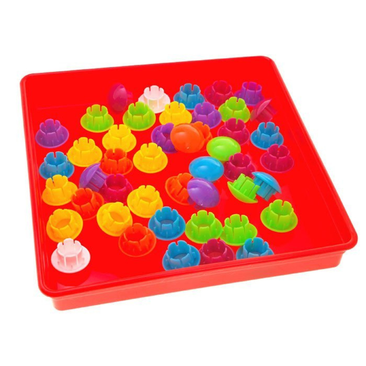 Izmanto iztēli, un rezultāts tevi pārsteigs. 46 daudzkrāsaini knaģi ļaus bērnam veidot un krāsot attēlus pēc savas idejas. Knaģus var sakārtot paplātē un pārklāt ar plāksni - izveidojot pārnēsājamu koferīti! Komplekts ir iepakots stilīgā, oriģinālā iepakojumā un ir lieliski piemērots kā dāvana.