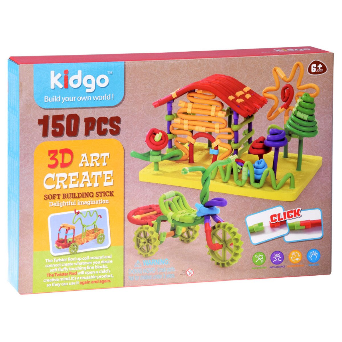 Komplektā ietilpst krāsainas, putu un elastīgas nūjiņas, kas paredzētas dažādu formu veidošanai. Tās ir patīkamas pieskārienam un var tikt salocītas un savītas jebkurā veidā, veidojot dažādus modeļus. Veicina bērnu iztēli un radošumu jau no trīs gadu vecuma. Tās lieliski saglabā formu, un pēc spēles pabeigšanas tās var viegli atgriezt sākotnējā formā. Komplektā iekļautās instrukcijas palīdzēs izveidot daudzus interesantus modeļus. Ierobežojumi ir tikai mūsu iztēlē un pieejamo elementu skaitā.