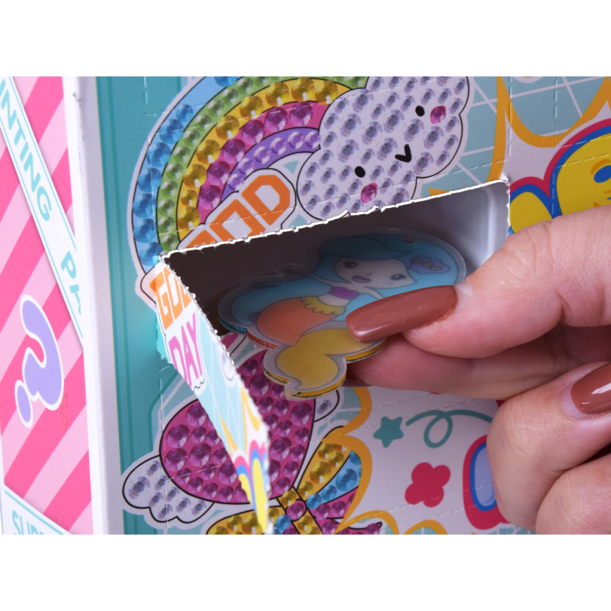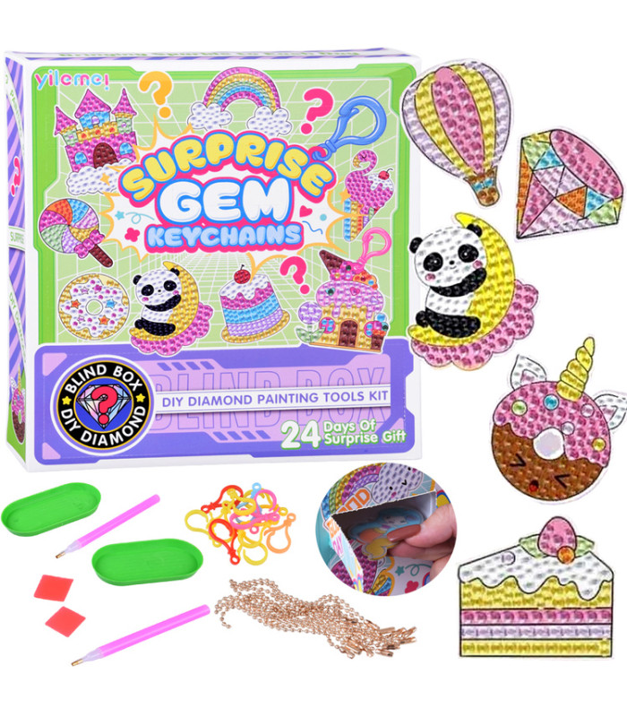 Atklājiet maģisko Ziemassvētku gaidīšanas laiku ar unikālu adventes kalendāru, kurā ir 24 logi! Katru dienu bērni atklās jaunu, spīdīgu dimanta krustdūriena piekariņu uz plastmasas pamatnes. No krāsainiem elementiem bērni var paši izveidot mirdzošus piekariņus, kas ir ideāli piemēroti mugursomas, atslēgu vai istabas rotāšanai.