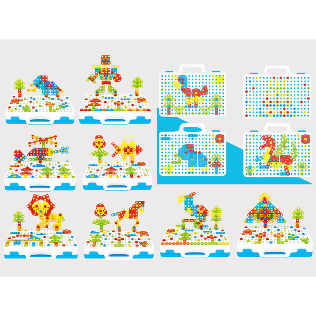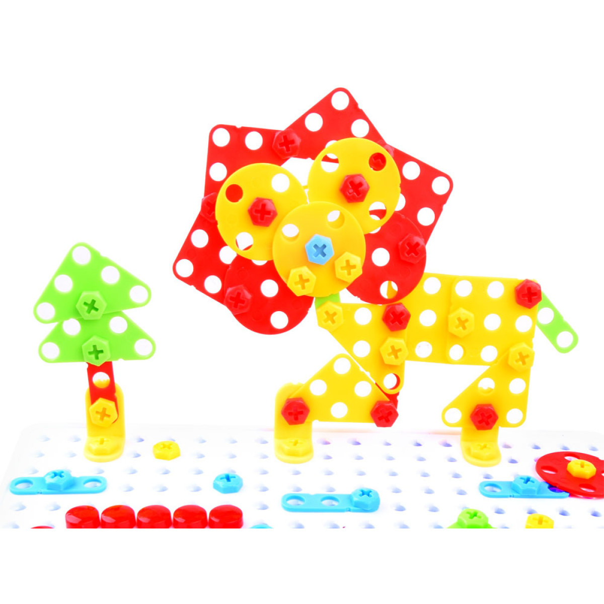 Fantastisks 237 elementu klucīšu komplekts, kas perfekti piemērots katram mazam konstruktoram. Konstrukcijas pamatā ir caurumu sistēma, pie kuras var pieskrūvēt dažādu formu un krāsu elementus.