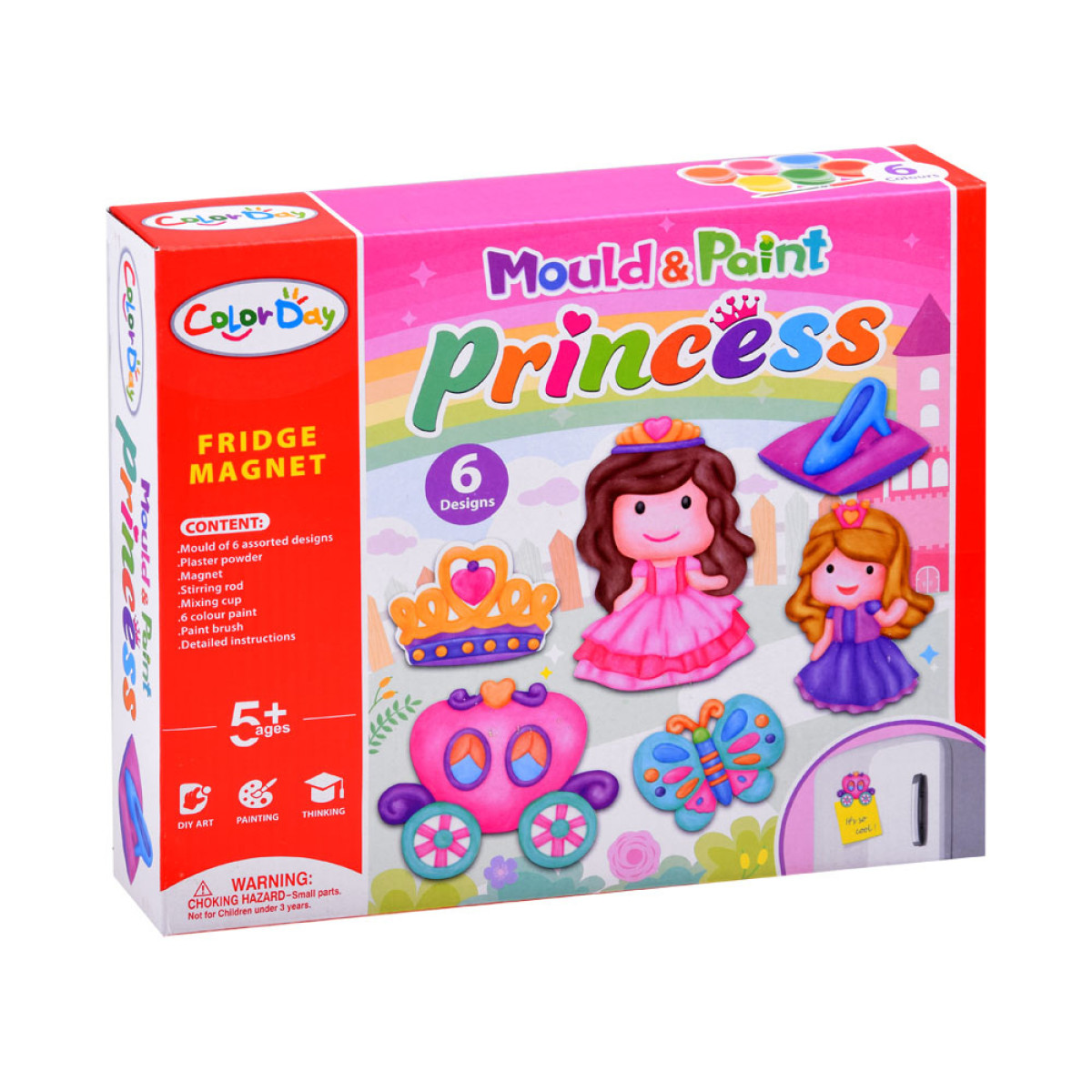 Šis ir brīnišķīgs komplekts radošām spēlēm - magnētu veidošanai ledusskapim karalienes, princeses, karietes, kroņa, tauriņa, kurpītes formā. Bērnam pašam ir jāgatavo atliešana un pēc tam jākrāso pēc izvēles.