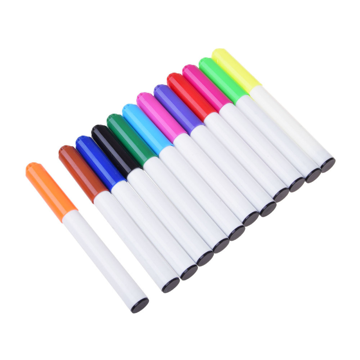 - 12 krāsaini marķieri (violets, rozā, tumši rozā, sarkans, dzeltens, oranžs, zaļš, tumši zaļš, zils, tumši zils, brūns, melns)