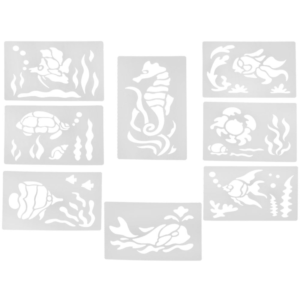 - 8 trafareti (bruņurupucis, delfīns, jūras zirdziņš, krabis, 4 dažādas zivis)
