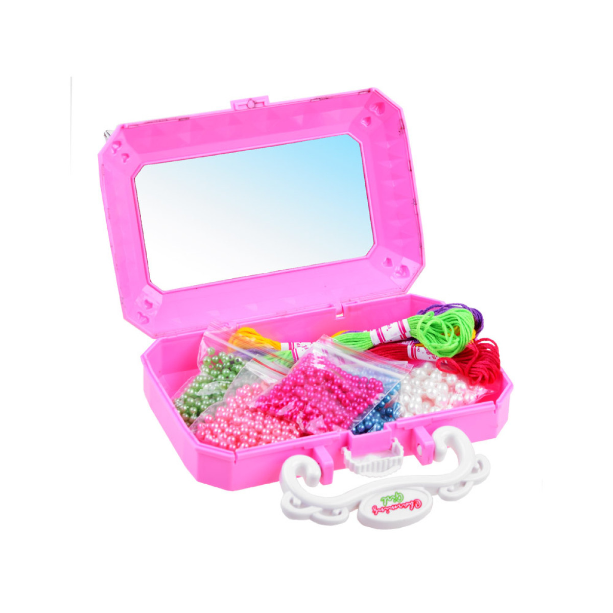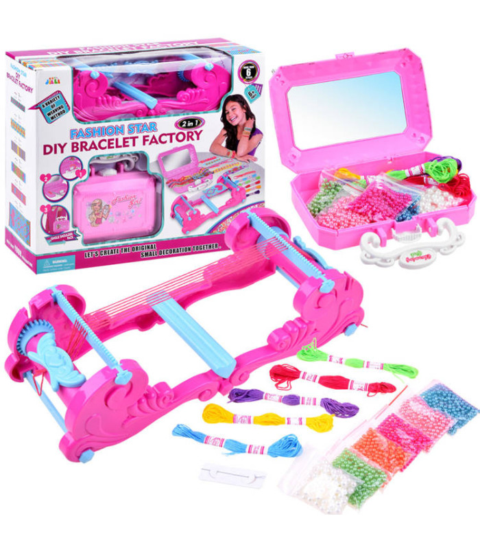 Aproces veidošanas komplekts ar plastmasas koferīti/somiņu ir lieliska izvēle ikvienai radošai meitenei, kura mīl mākslinieciskas un veiklības nodarbes. Pašdarinātas rotaslietas, piemēram, aproces un krelles, vienmēr būs viskrāšņākās un vērtīgākās. Komplektā papildus aušanas stellei aproču veidošanai ir iekļauta arī krāsaina mulina, pērļu krelles un pērļu virtene, kas var kalpot gan kā somiņas siksniņa, gan kā apģērba dekors. Radošais komplekts ļaus katrai meitenei pašai izveidot aproces ar spīdīgām krellēm, kas var būt lieliska dāvana mammai, māsai vai draudzenei.