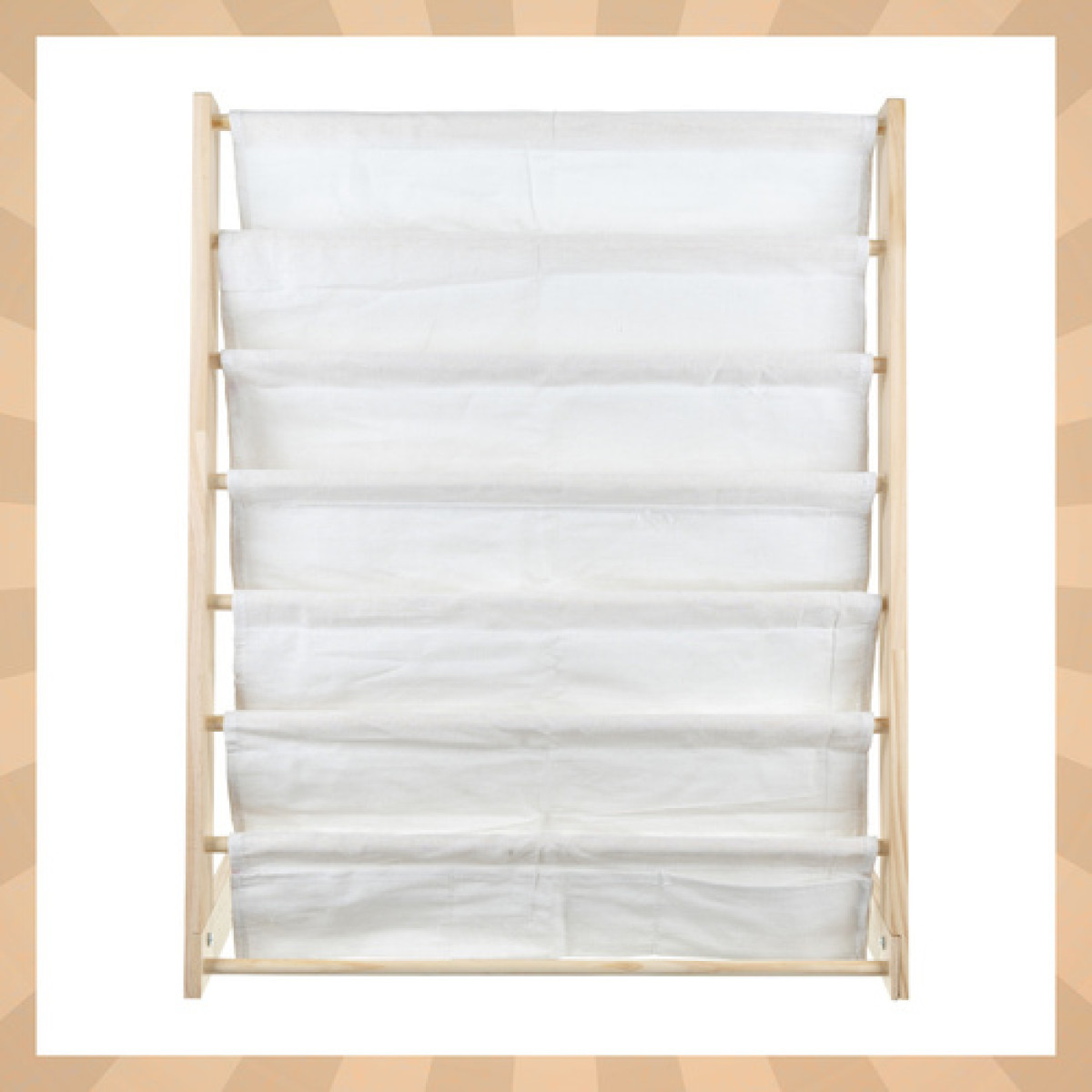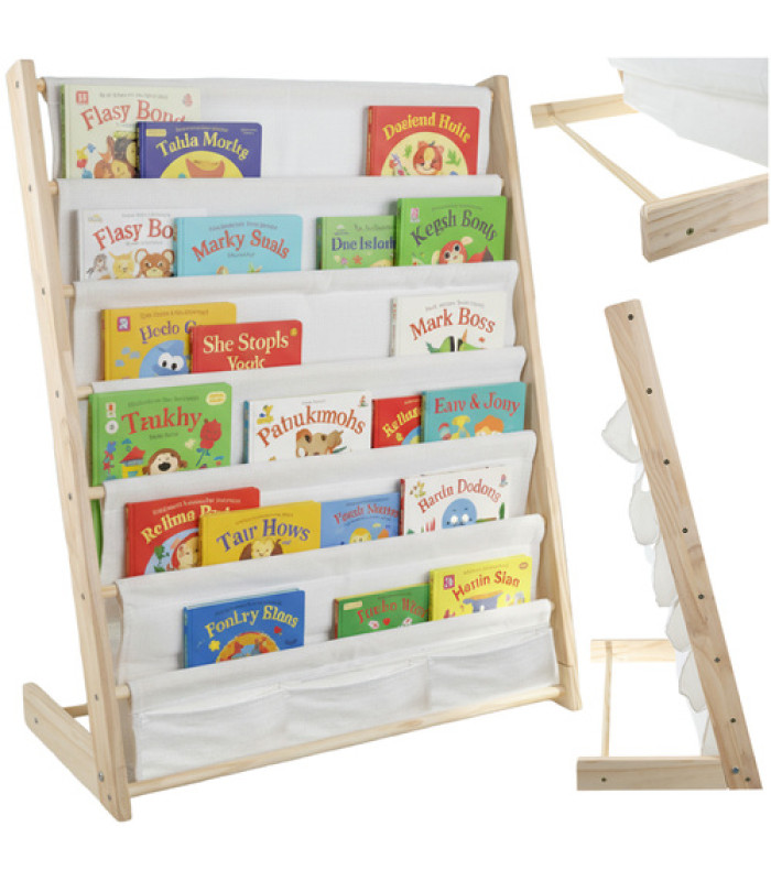 Viegls, stabils un drošs bērnu grāmatu plaukts Kruzzel palīdz uzturēt kārtību grāmatās, krāsojamās grāmatās un rotaļlietās. Augstums, kas pielāgots bērniem, atvieglo neatkarīgu piekļuvi un mudina lasīt. Koka konstrukcija ar auduma plauktiem apvieno estētiku ar funkcionalitāti, kas piemērota gan moderniem, gan klasiskajiem interjeriem.