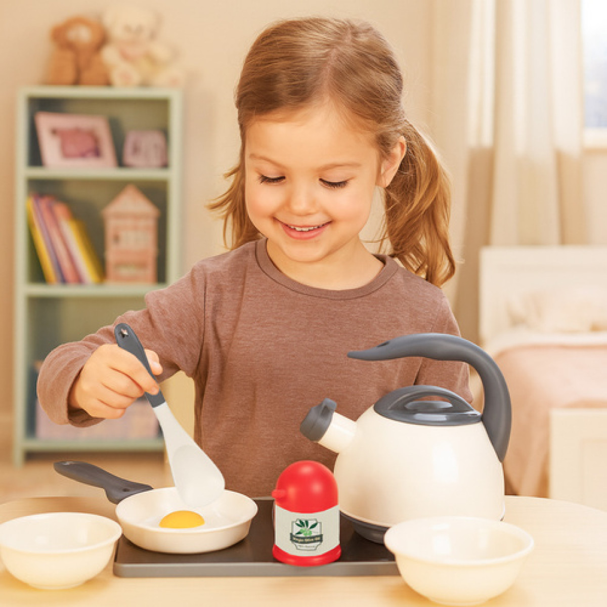palaiko kasdienį vaiko vystymąsi – virtuvės žaidimų rinkinys yra praktiškas ir lavinamasis žaislas, kuris padeda vaikams lavinti rankinius įgūdžius, vaizduotę, vaidmenų žaidimo įgūdžius ir kasdienių pareigų žinias