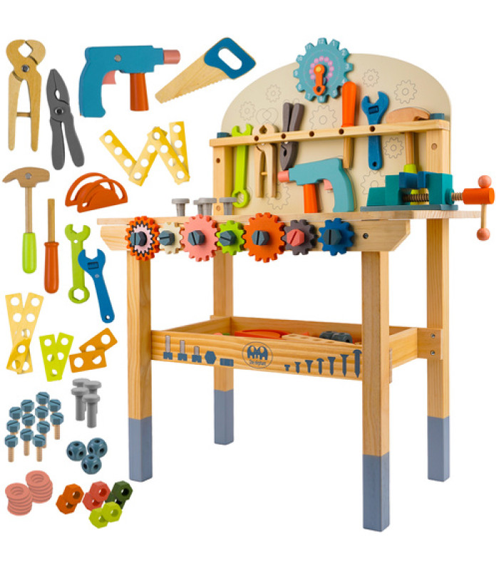 Interesē bērnus - koka darbnīca nav tikai rotaļlieta, bet arī izglītojošs instruments, kas attīsta koordināciju, iztēli un manuālās prasmes, katrs bērns atradīs kaut ko interesantu no skrūvspīles līdz skrūvju pievilkšanai.