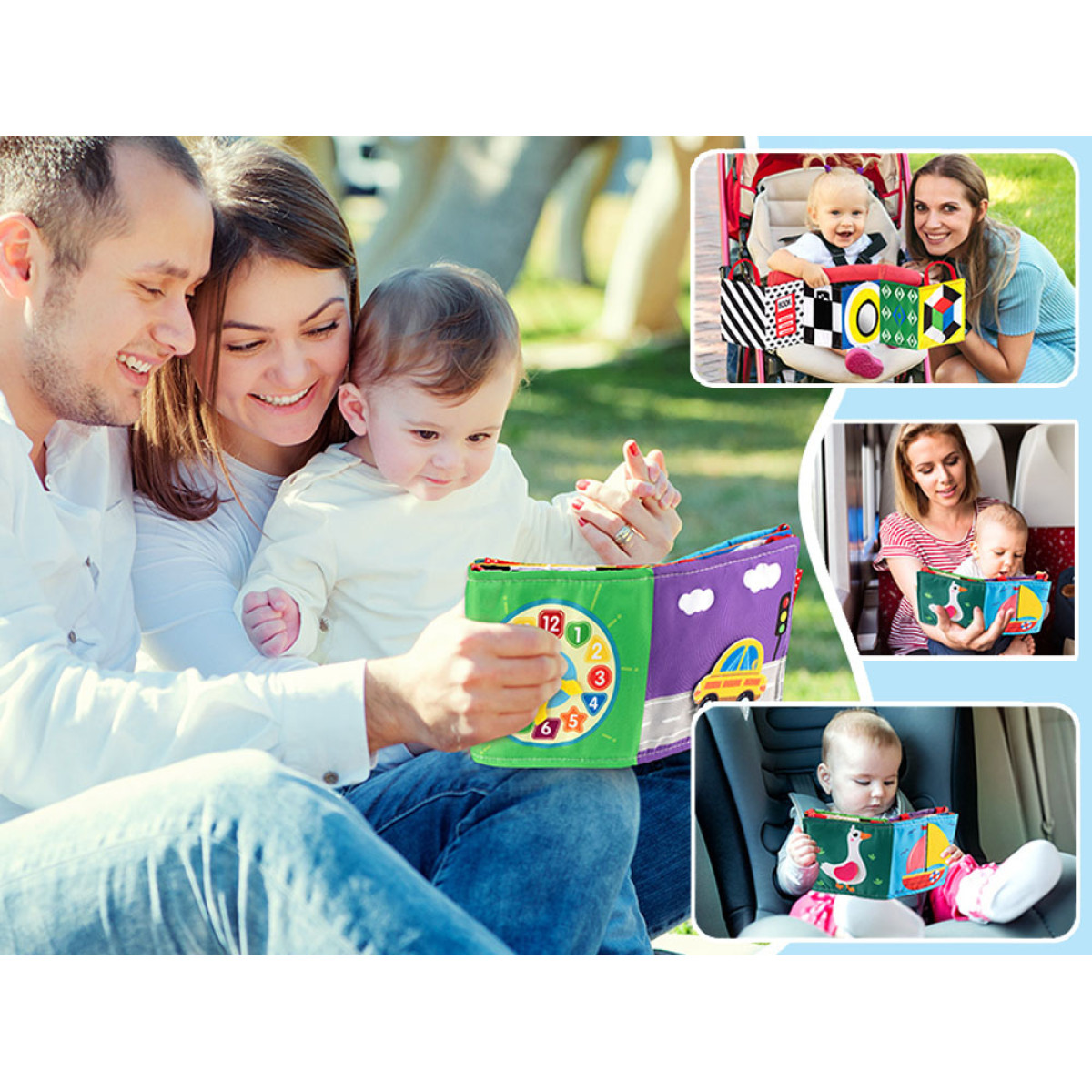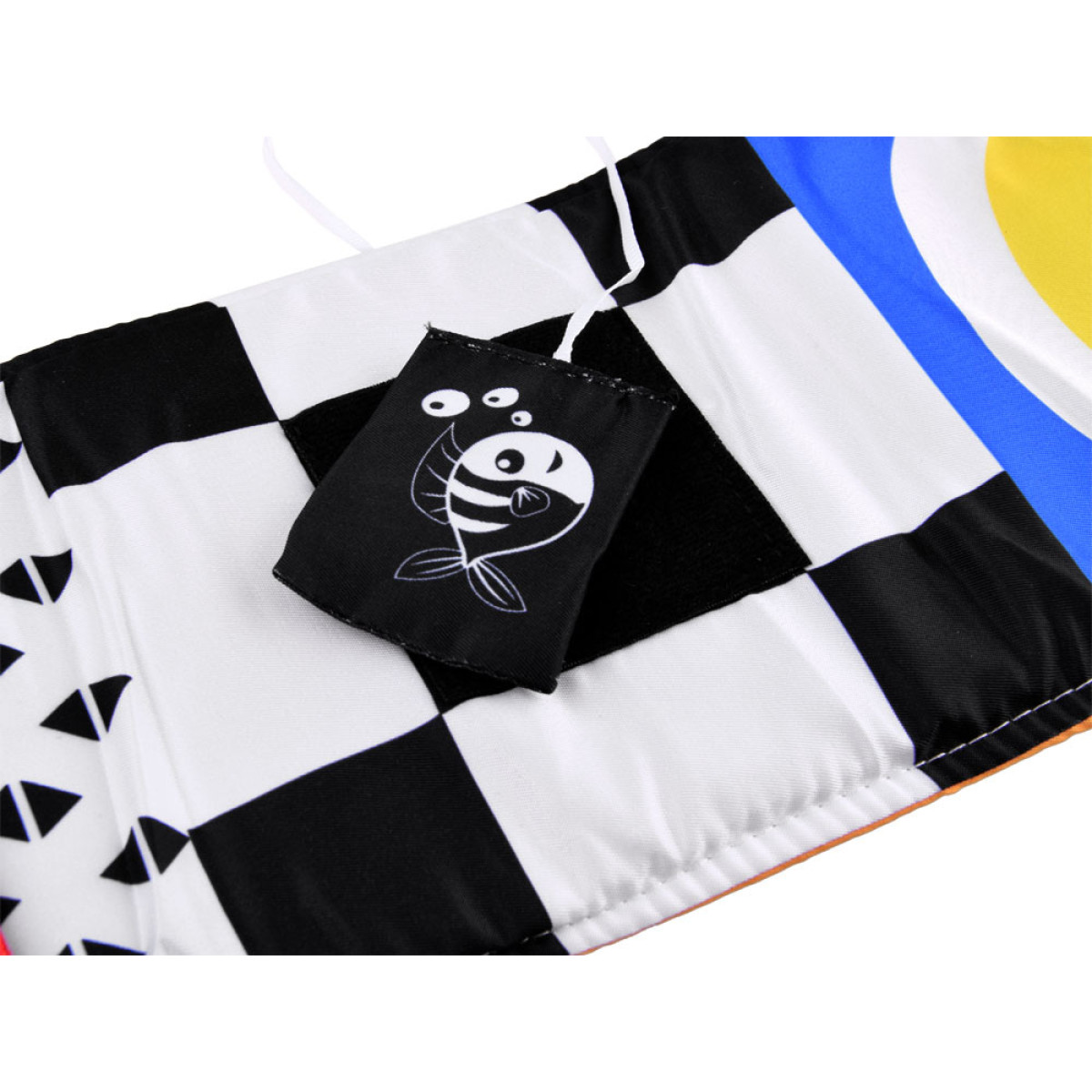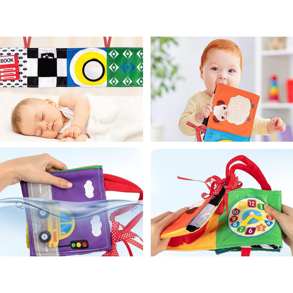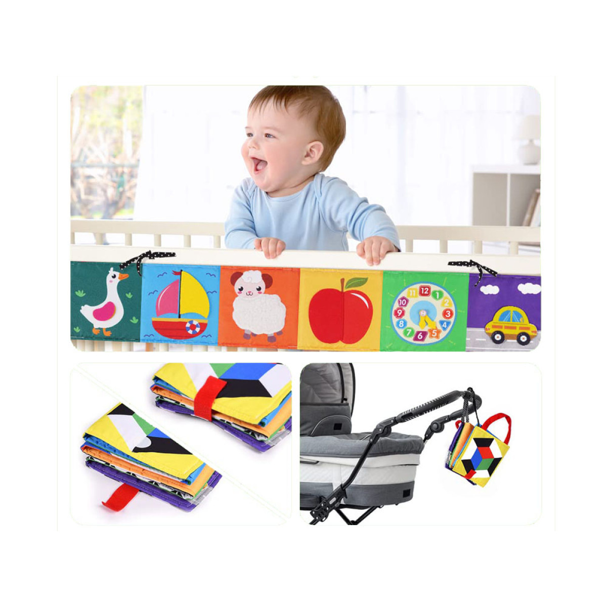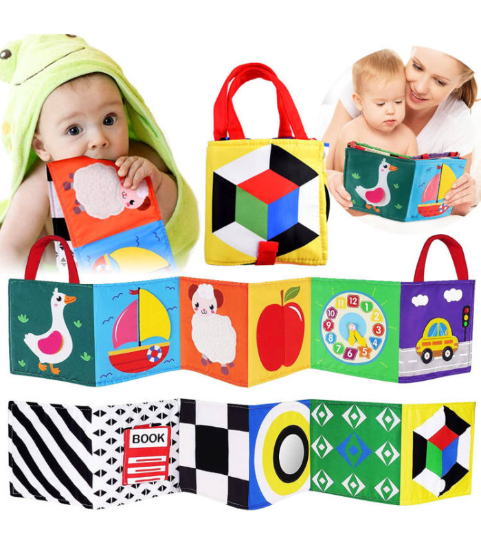 Burvīga un attīstoša auduma grāmata ir ideāli piemērota mazajiem jau no pirmās dzīves dienas. Mīkstā grāmata satur 12 melnbaltus vai krāsainus attēlus, kas parāda kontrastējošas ģeometriskas formas vai jautrus dzīvnieku un priekšmetu attēlus.