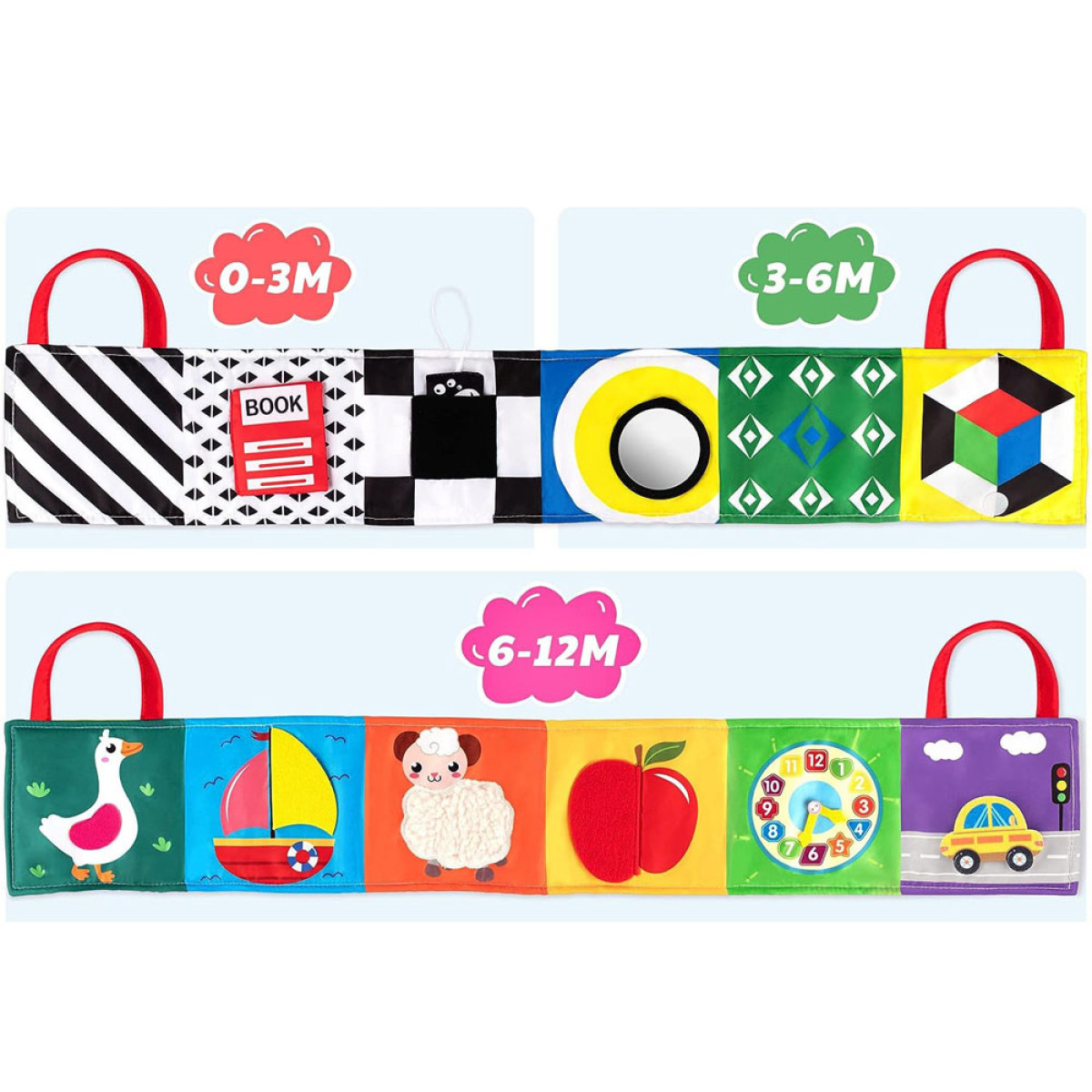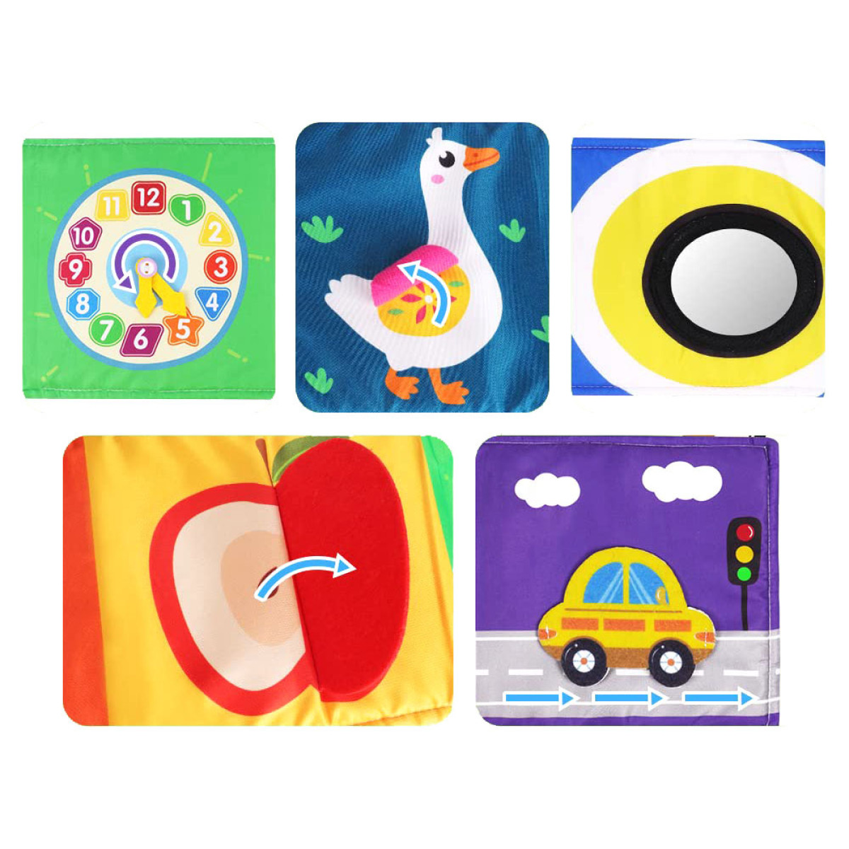 Spēlējoties ar mīksto krāsaino grāmatu, mazulis attīsta spēju koncentrēt uzmanību uz attēlu, trenē krāsu un formu atšķiršanu. Daudzkārtīga aplūkošana, pieskaršanās un materiāla satveršana lieliski attīsta vizuālo uztveri un acu-roku koordināciju. Ilustrācijas attēlo rotaļlietas, dzīvniekus, ģeometriskas figūras un objektus, kas izkārtojas rakstos, lai attīstītu mazuļa spēju koncentrēt redzi vienā punktā un paplašinātu redzes lauku. Bērns attīsta valodu un modina interesi par pasauli šādā veidā.