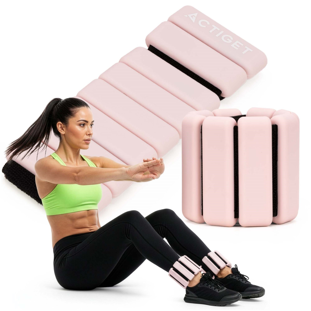 Produktam ir Actiget® logotips. Divi svara elementi ir pastāvīgi piestiprināti, bet pārējos moduļus var brīvi noņemt un pievienot.