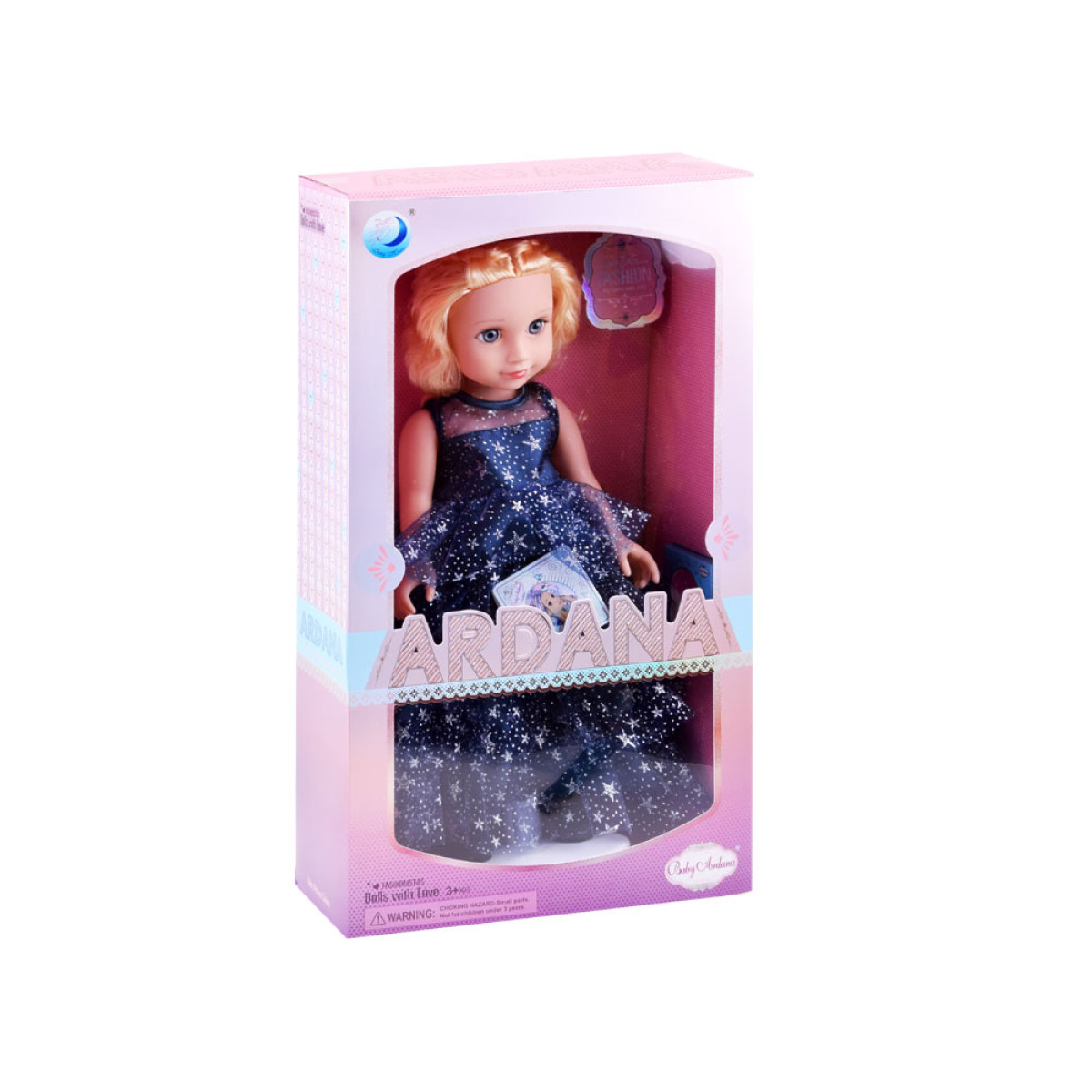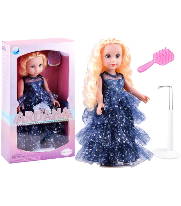 Lelle ar gariem blondiem matiem, skaistā balles kleitā, melnās kurpītēs. Lelle ir pilnībā izgatavota no plastmasas, tai ir kustīgas rokas, kājas, galva. Skaistā Ariana ir ģērbusies tumši zilā balles kleitā, ko rotā sudraba zvaigznītes, un var kļūt par bērna labāko draudzeni. Protams, ar šādu lelli var doties uz jebkuru balli, dzimšanas dienas svinībām, bet es pieņemu, ka Ariana arī labprāt skatīsies pasaku, klausīsies mūziku, dalīsies noslēpumos utt. Laiks, spēlējoties ar šādu lelli, ir tīrs prieks.