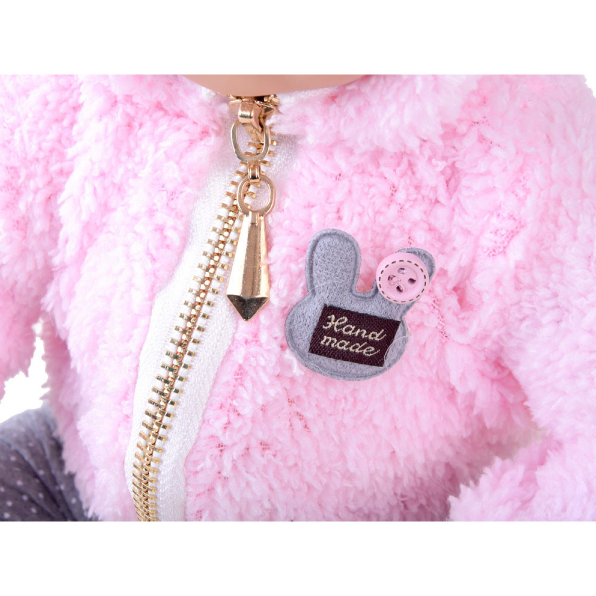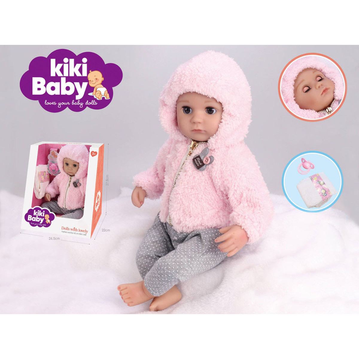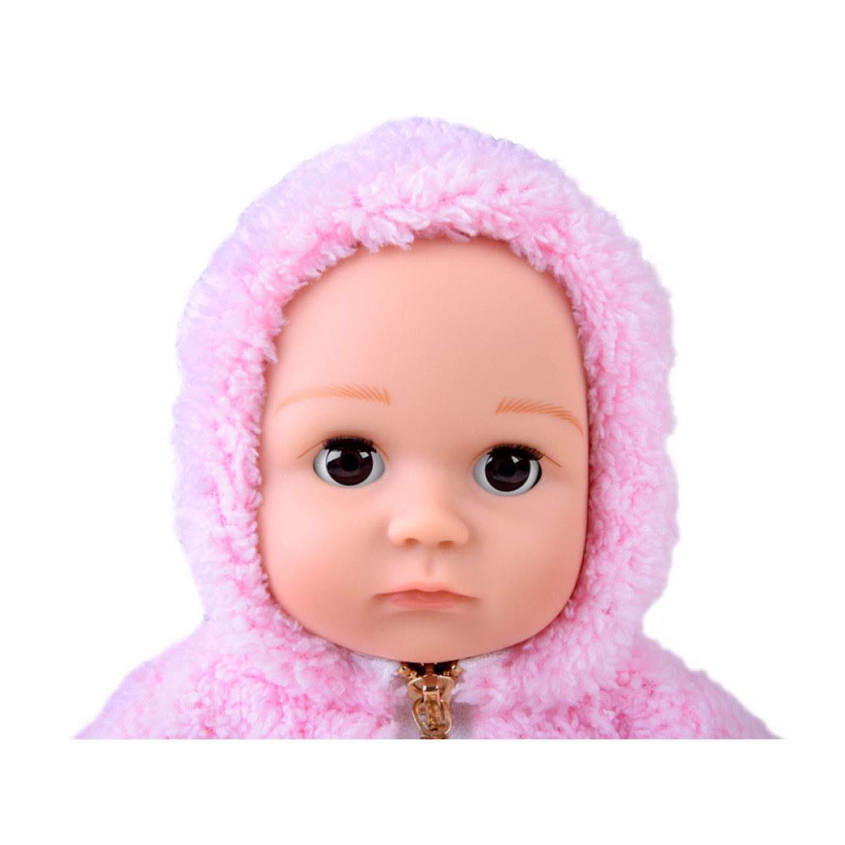 Lelle izskatās kā jaundzimušais. Priekšrocība: Tai ir mīksts auduma vēders, bet galva, rokas un kājas izgatavotas no cietas gumijas. Priekšrocība: Kad lelle tiek nolikta guļus, tās acis aizveras. Tāpat kā īsts zīdainis, tai nav matu uz galvas, bet no aukstuma to pasargā silta, patīkama rozā jaka ar kapuci. Komplektu papildina stilīgas pelēkas legingi ar punktiem. Priekšrocība: Komplektā iekļautā autiņbiksīte ļauj praktizēt mazuļa pārtīšanu.