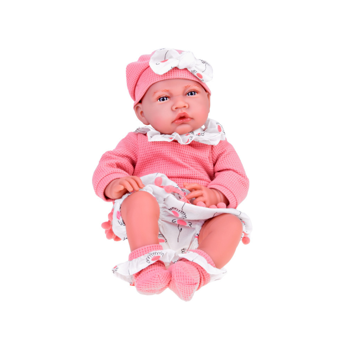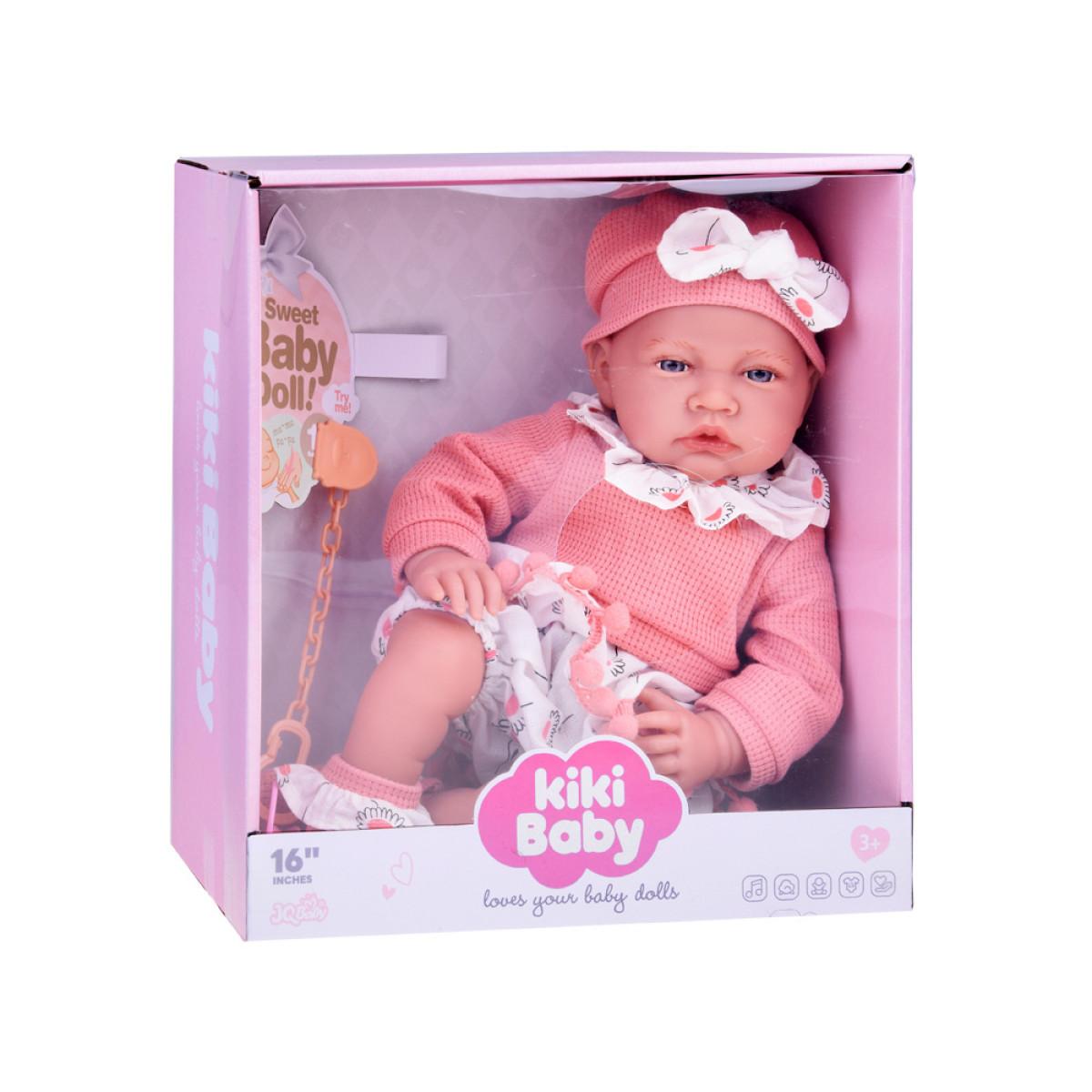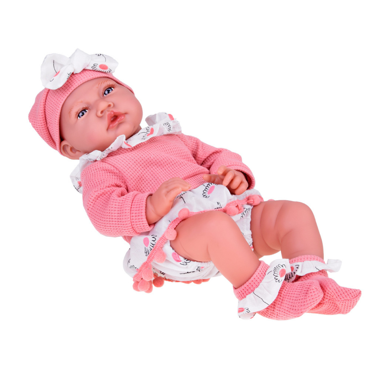 Šī burvīgā meitenīte ir skaisti ģērbusies rozā, patīkami pieguļošā komplektā. Vai jūsu bērns mīl spēlēties ar lellēm? Tad šī izvēle noteikti viņu iepriecinās!