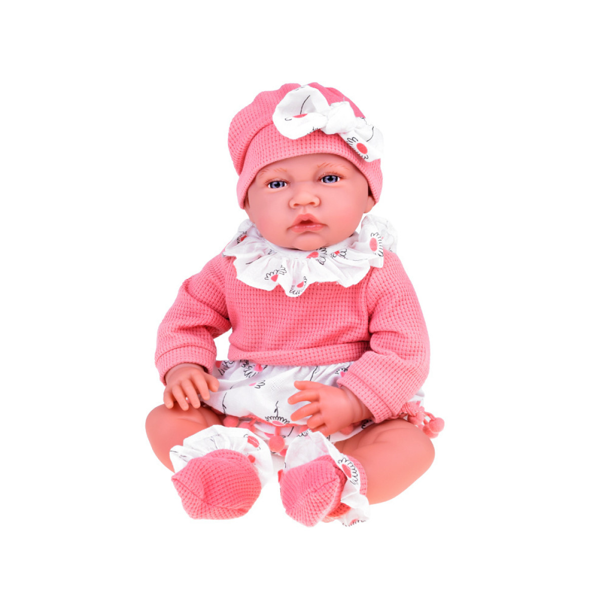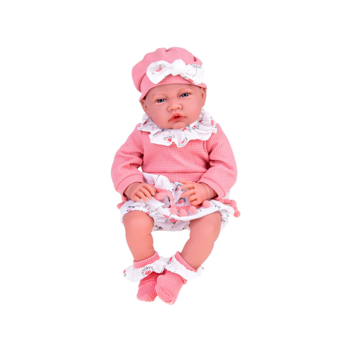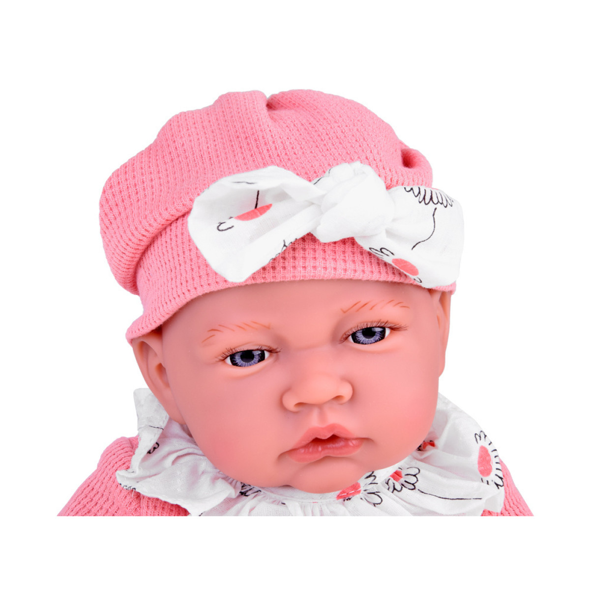 Mīksta un interaktīva BĒRNIŅA lelle 45 cm meitenīte rozā komplektā