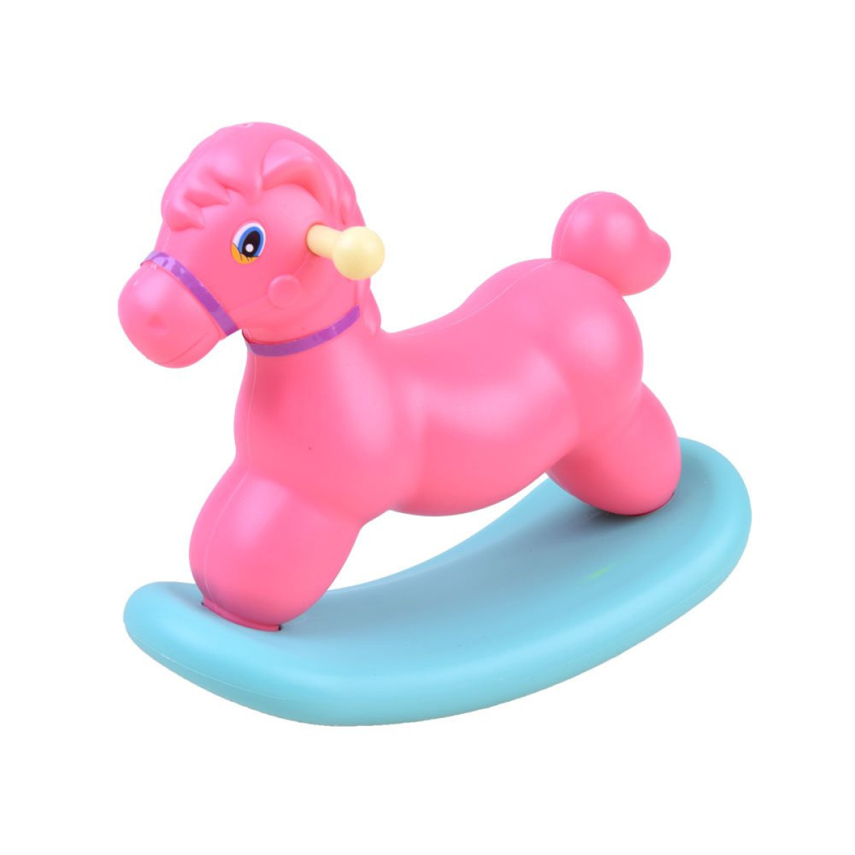 Šūpuļzirgs ir pilnībā izgatavots no plastmasas, patīkamās krāsās. Pateicoties plašajam sēdeklim un rokturu atbalstiem, lelle var stabilā sēdēt uz tā.