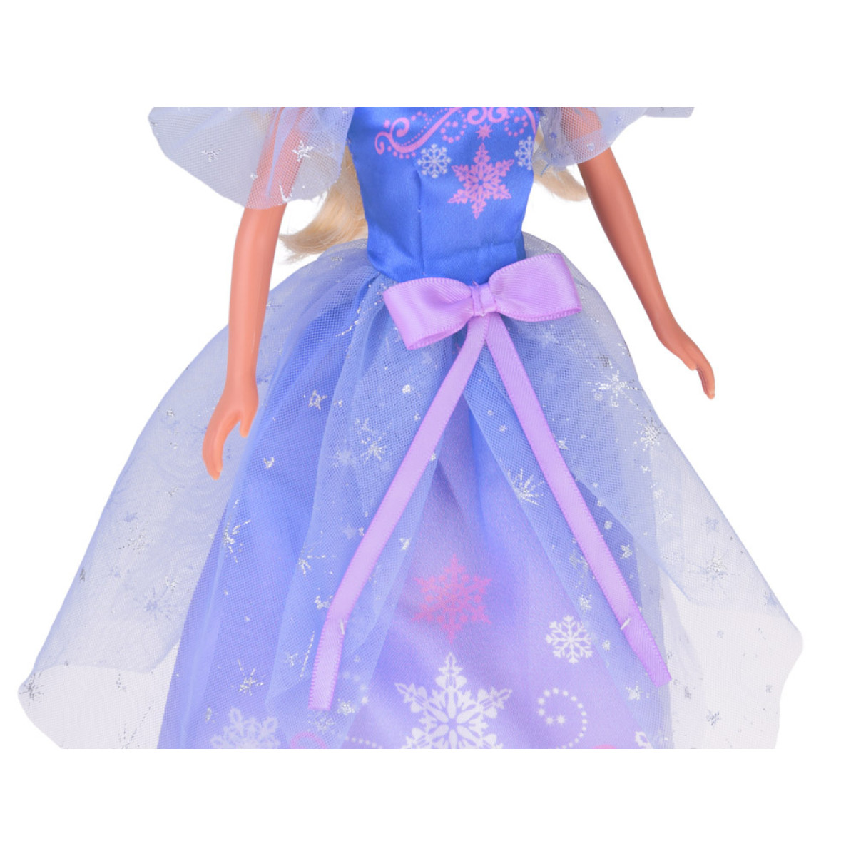 Princesei ir gari, zeltaini mati, kurus var ķemmēt un stilizēt. Viņa ir ģērbusies lilā vakarkleitā, kas dekorēta ar mirdzošu tiulu un loku. Stilu papildina kaklarota un tiara. Lellei ir kustīgas ekstremitātes.