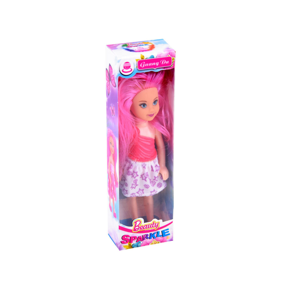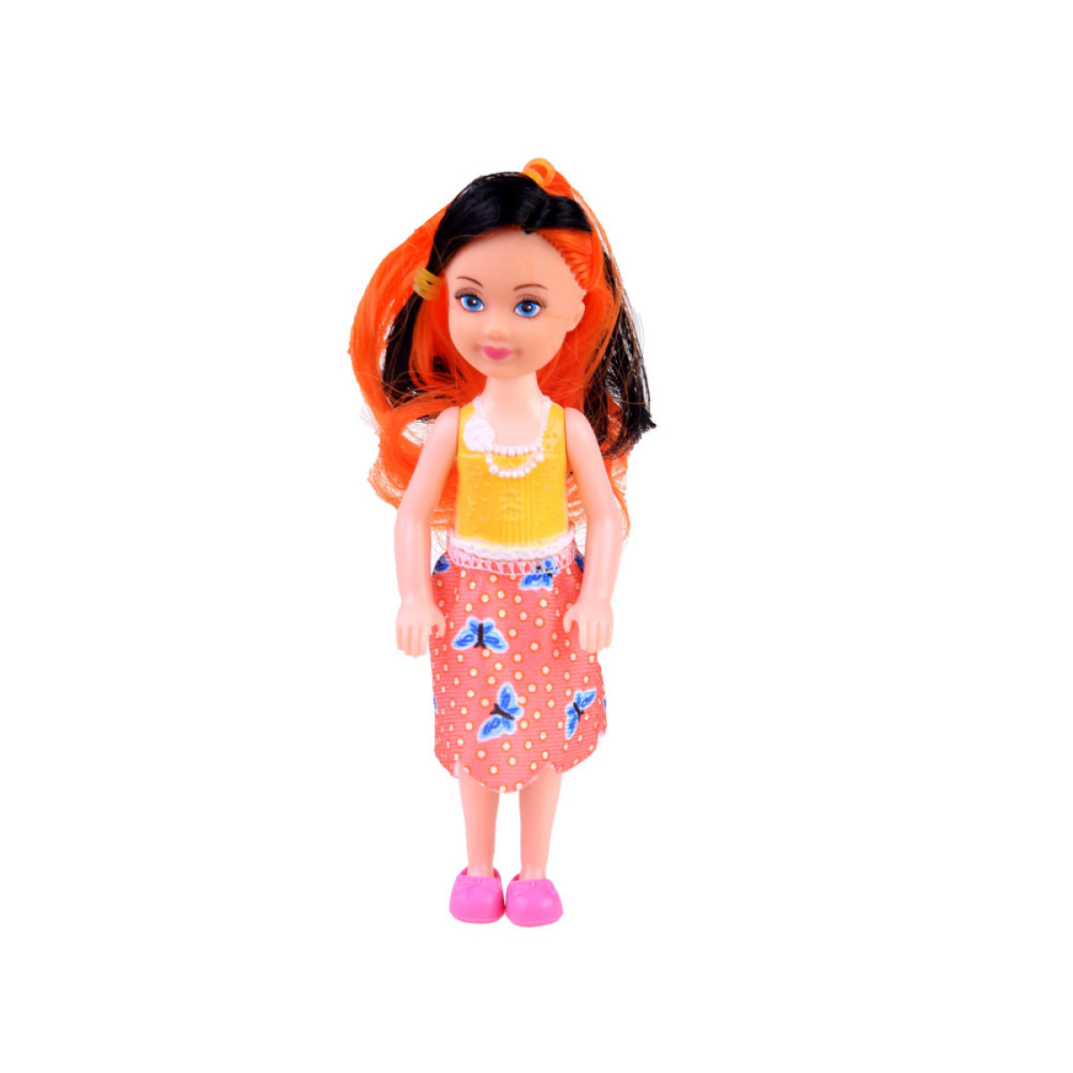 Mazā lelle ir lieliska rotaļlieta. Ar augumu 14 cm, šī lelle būs ideāla pavadone katrai meitenei. Priekšrocība ir tās kompaktais izmērs, kas ļauj viegli ņemt līdzi uz bērnudārzu, pie ārsta vai pastaigās, jo tā ietilpst jebkurā mugursomā vai somiņā. Lelle ir izgatavota no plastmasas, ar gumijas galvu un garu krāsainu matu priekšrocību. Rokas un kājas ir kustīgas. Lelle ir ģērbusies krāsainā korsetes un rakstainā svārciņu komplektā ar gumiju. Kājas rotā rozā kurpītes ar lenti.
